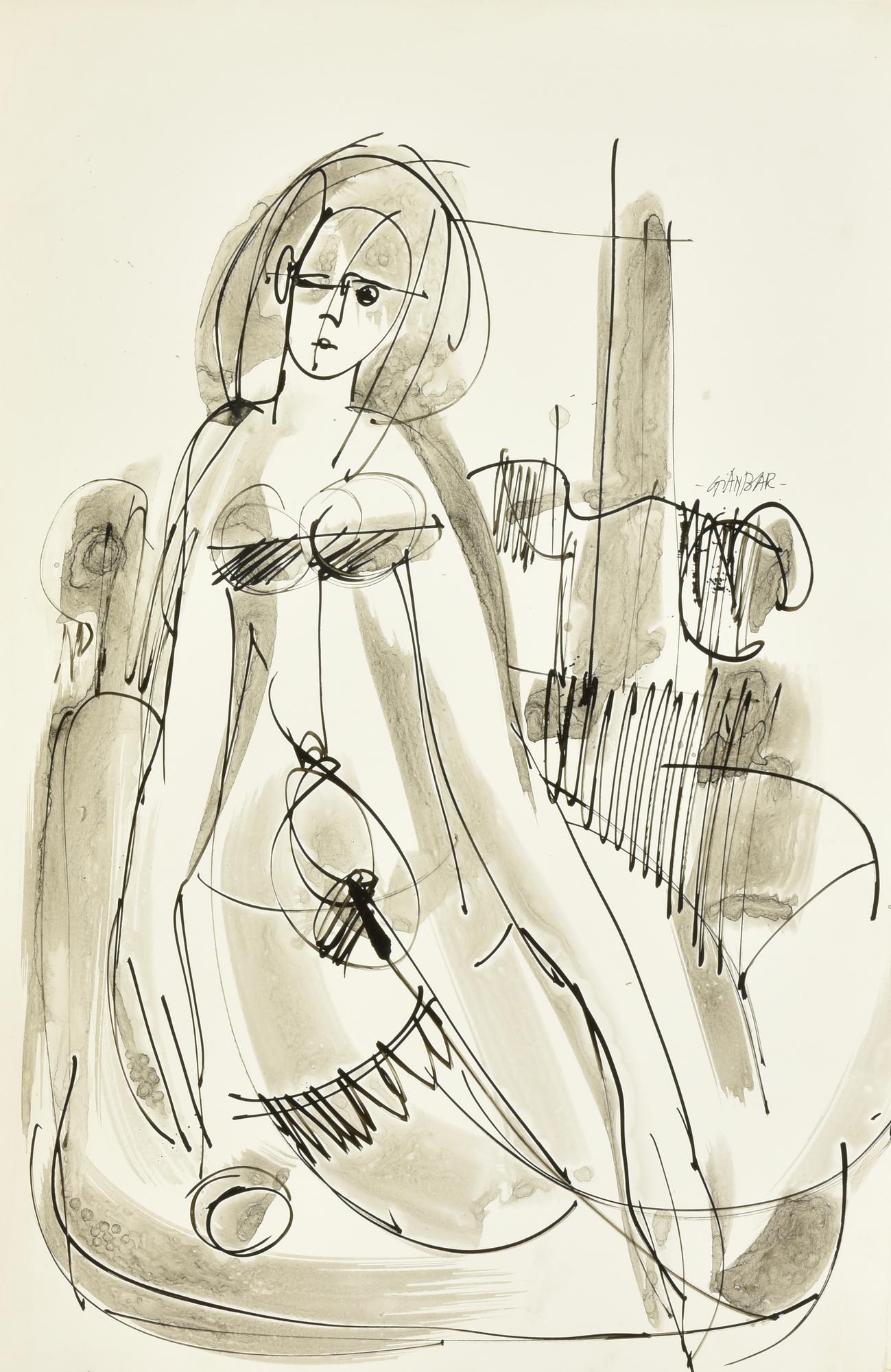 GIANBAR (Gianni Baretta) DONNA CON MELA china acquarellata su cartoncino, cm...