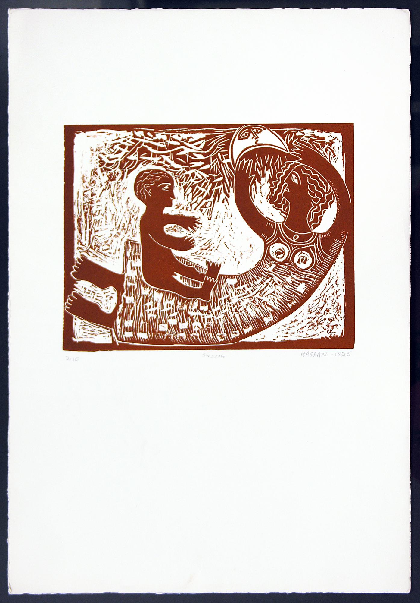 Hassan FIGURE linoincisione su carta, cm 19,5x25,5; su foglio cm 50x35; es....