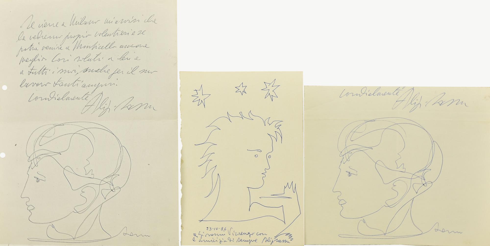 Aligi Sassu LOTTO DI TRE DISEGNI biro su carta - cm 21x14 - cm 30x21 - cm...