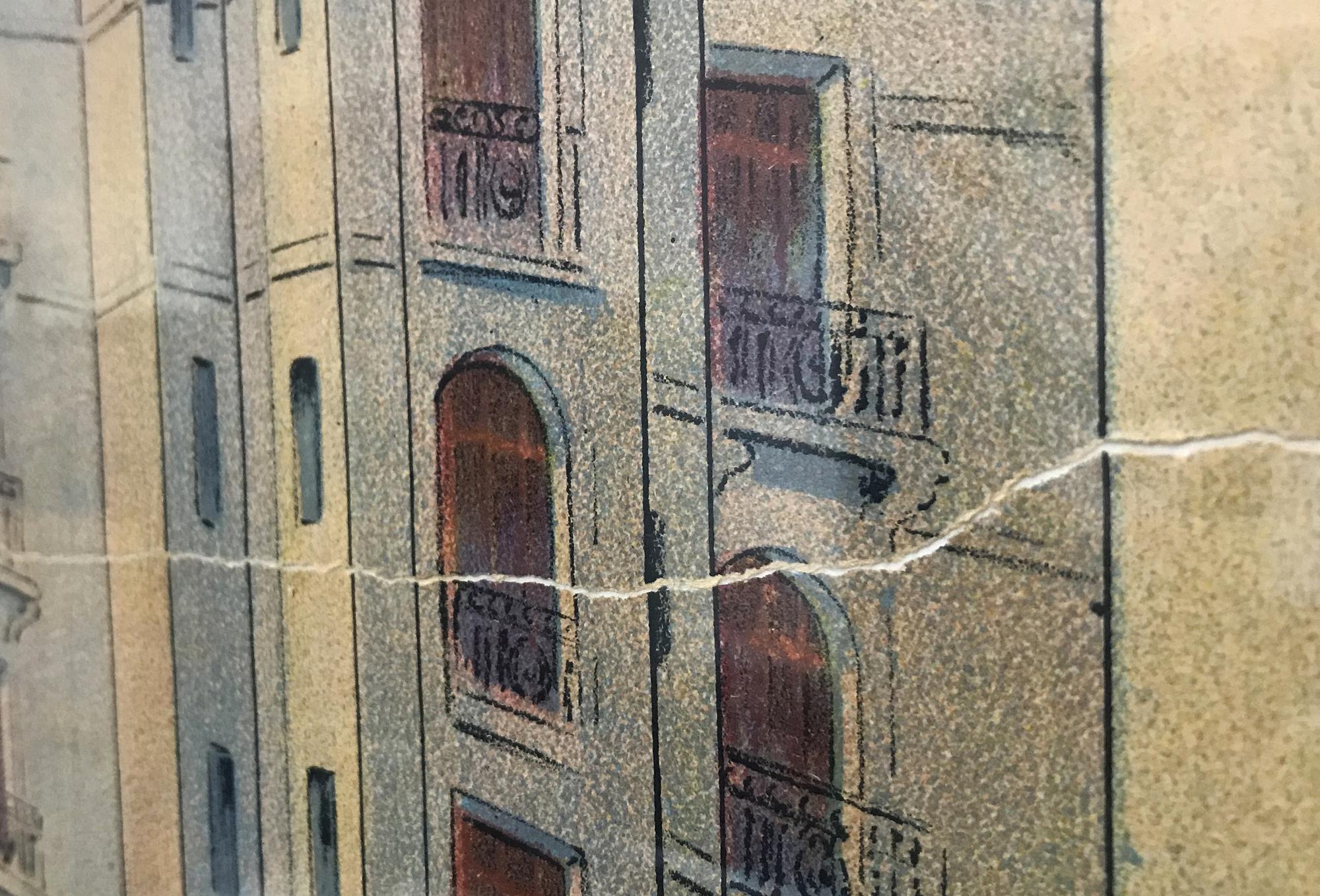 L'opera presenta uno strappo longitudinale di ca. 100 cm e alcune piegature diffuse