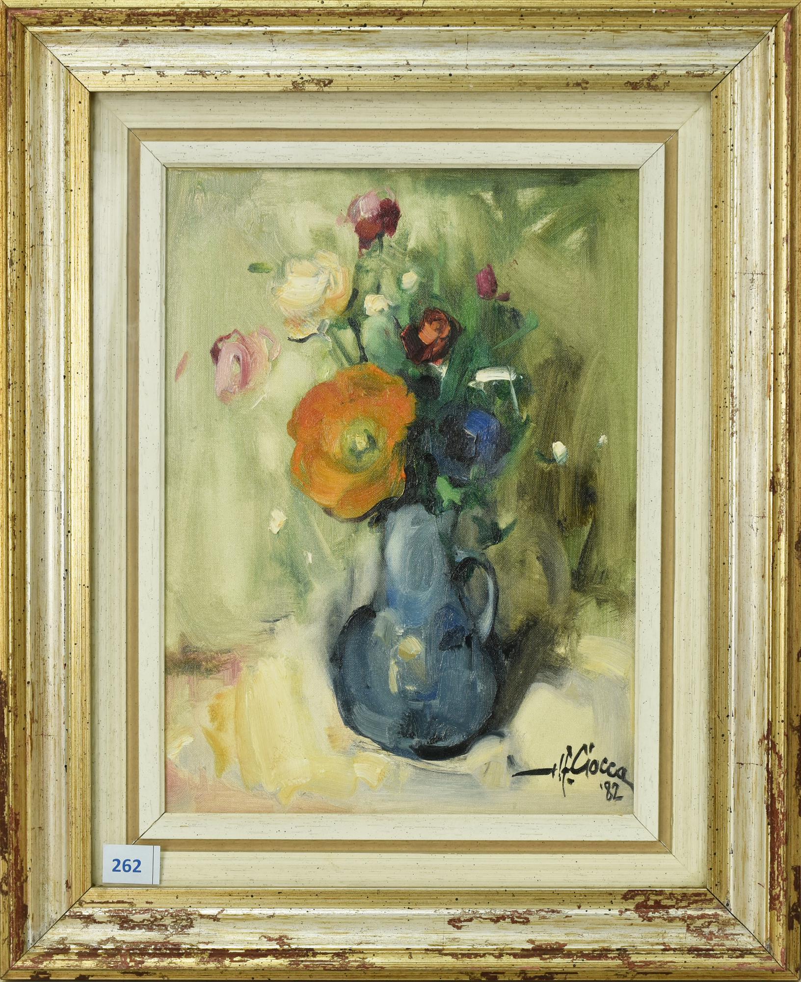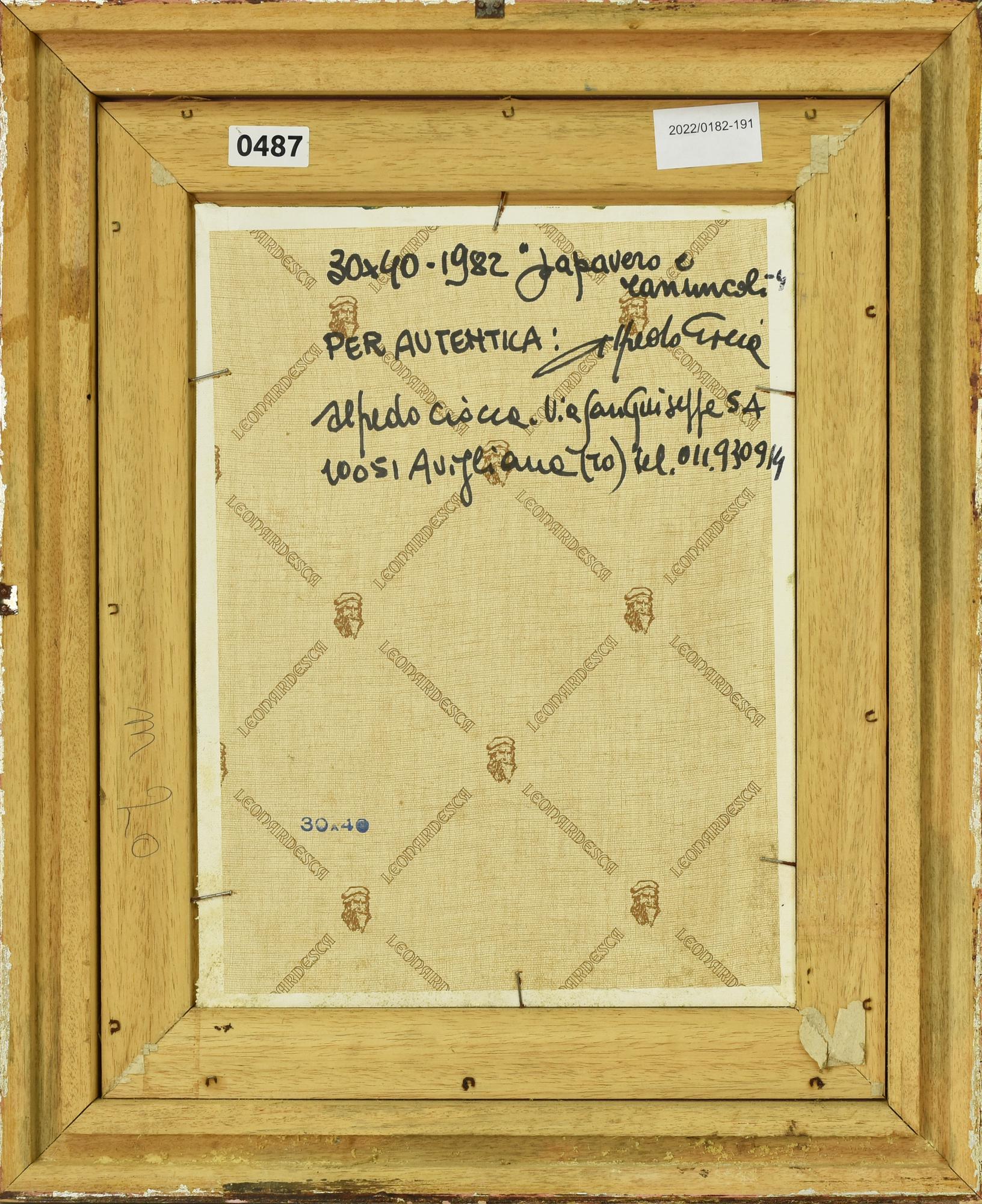 Alfredo Ciocca PAPAVERO E RANUNCOLI olio su cartone telato, cm 40x30 firma e...