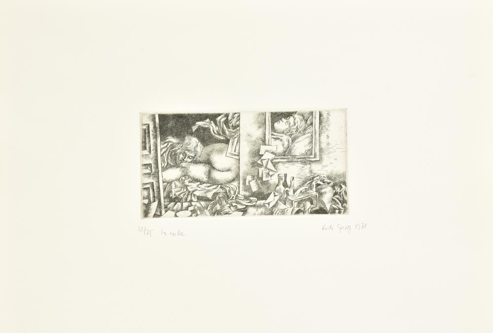 Rudi Gorog LA NOTTE incisione su carta Fabriano, battuta cm 10x20, su foglio...