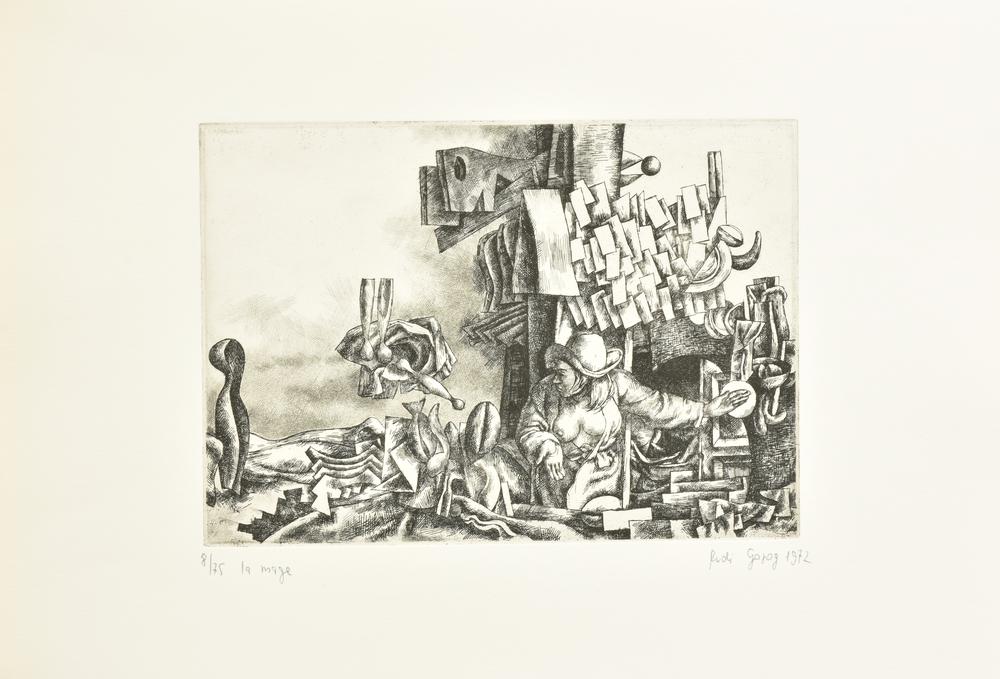 incisione su carta Fabriano, battuta cm 19,5x27,5, su foglio cm 32,5x47,5; es. 8/75