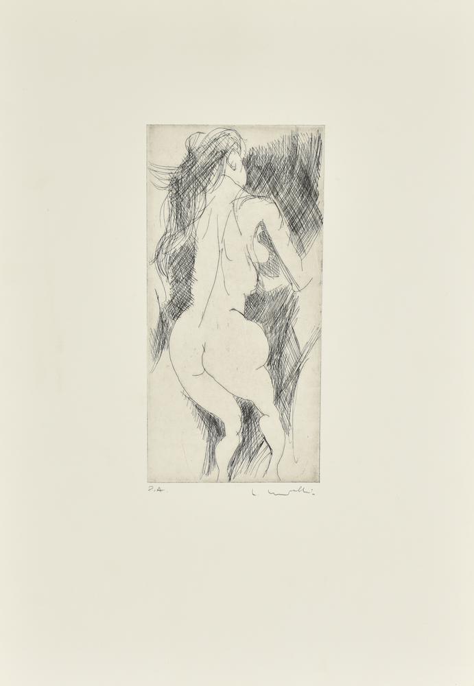 Carlo Morelli STUDIO DI NUDO acquaforte su carta, battuta cm 25x12, su foglio...