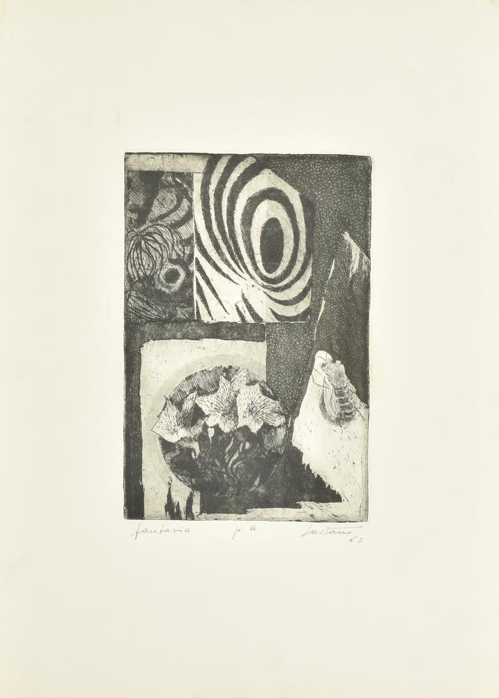 Aldo Castano FANTASIA incisione su carta, battuta cm 25x16,5, su foglio...