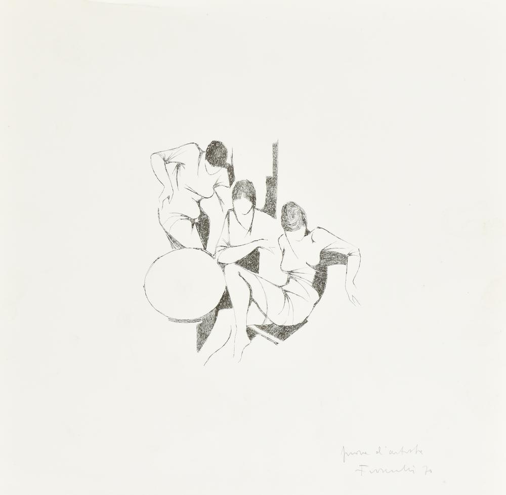 Frosecchi TRE DONNE litografia su carta, cm 32x33,5; es. prova d'autore firma...