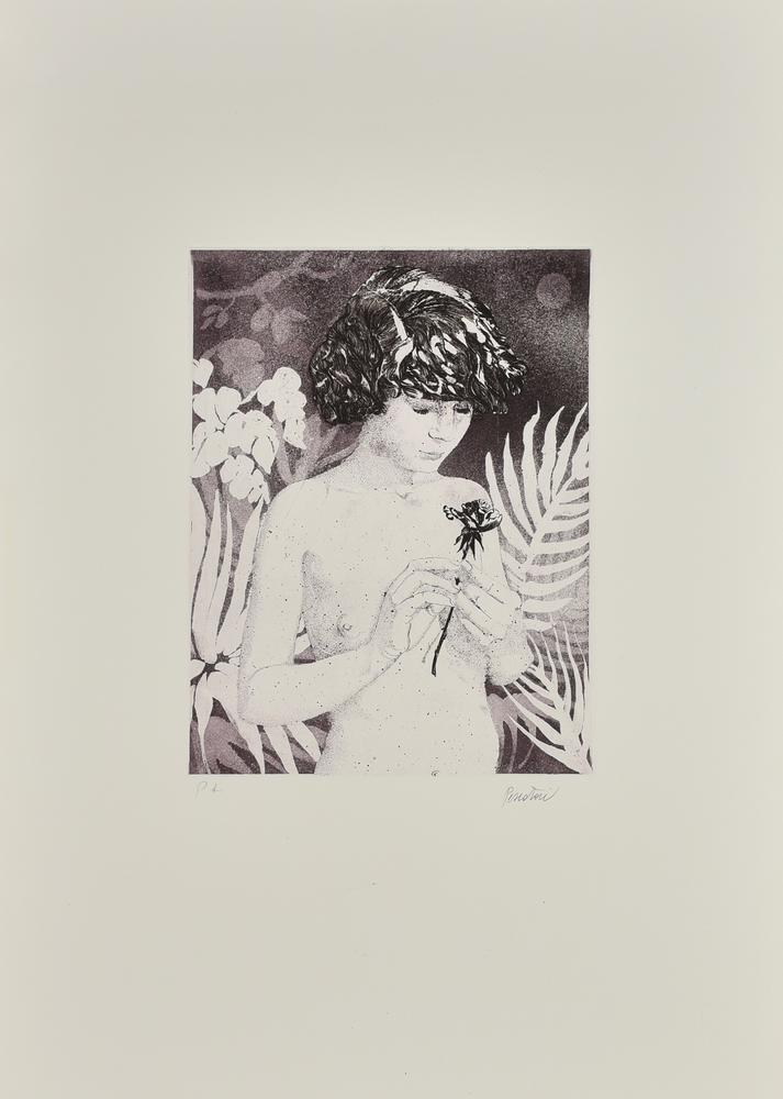 Carlo Pescatori FANCIULLA CON ROSA Acquaforte acquatinta, mm 322x245, su...