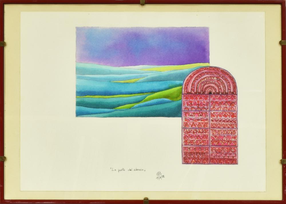 Ignoto LA PORTA DEL SILENZIO acquerello su carta, cm 23x30 firma, data e titolo