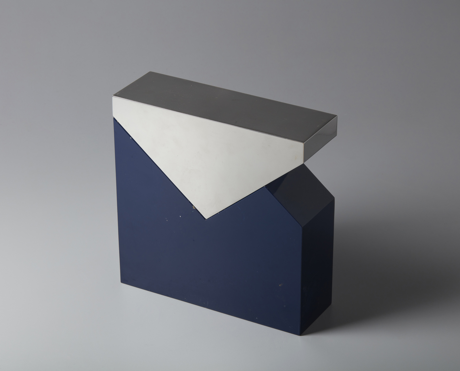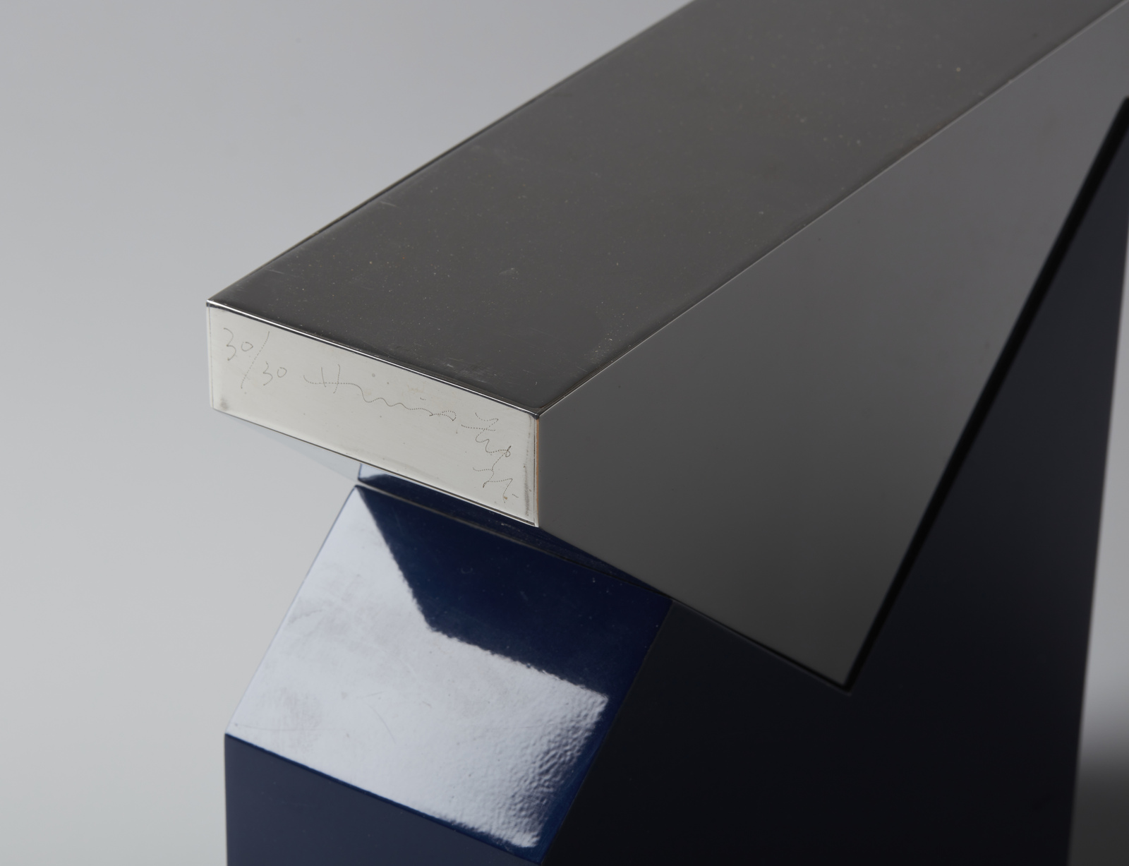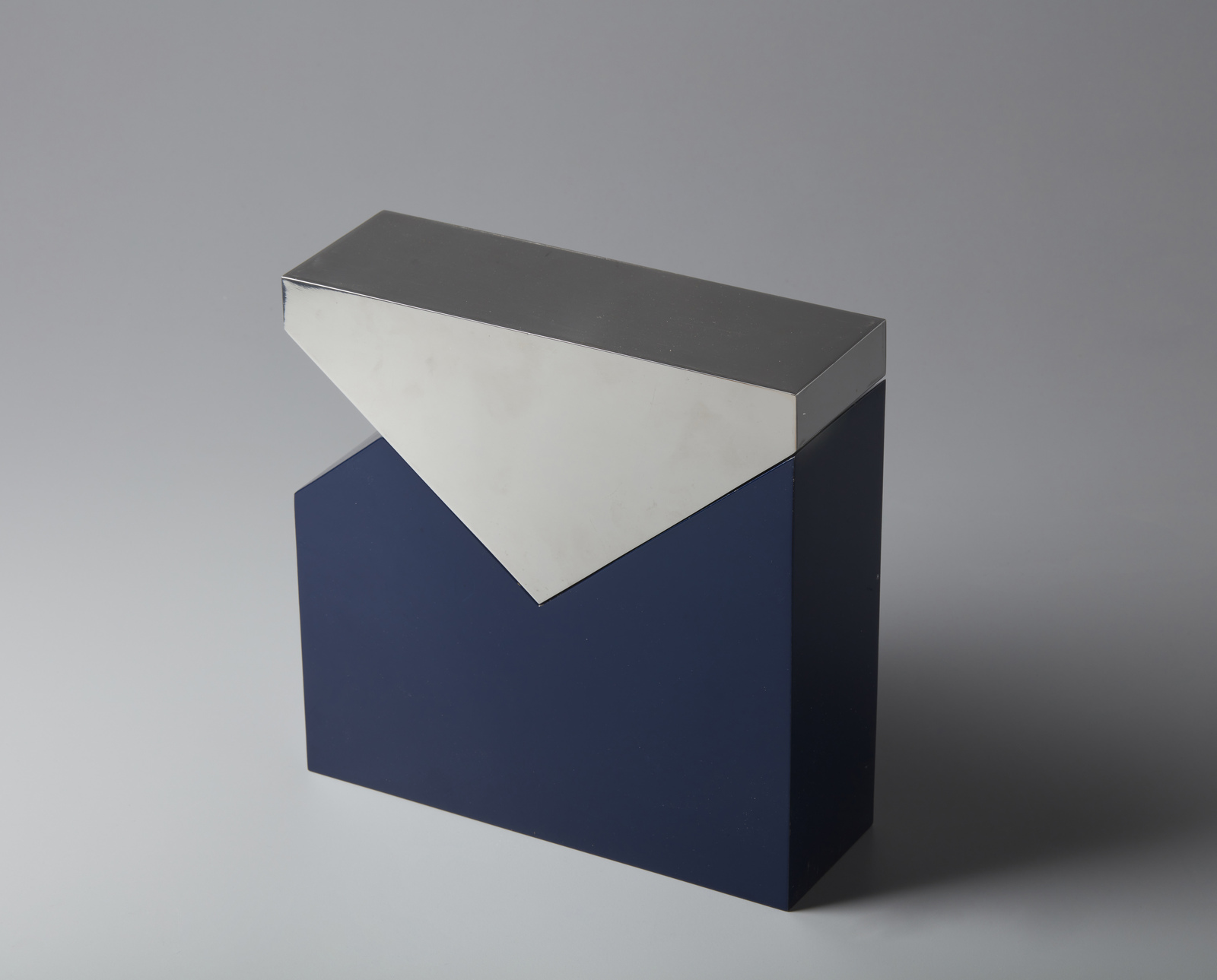 CHIN HSIAO (n. 1935) Senza titolo. 1971. Acciaio cromato. Cm 24,00 x 24,00 x 8,00. 30/30. Firma e tiratura in basso. Difetti.