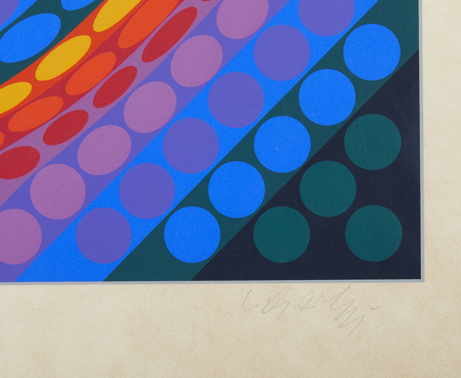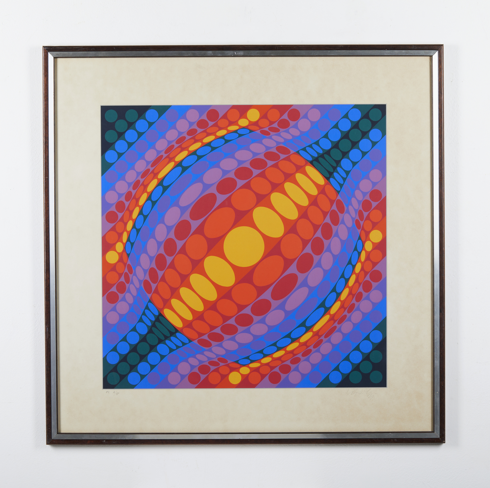 VASARELY VICTOR (1906 - 1997) Planeta. Serigrafia.. Cm 77,00 x 77,00. 2/75 p.l. Firma e tiratura in basso a matita. Edizione totale: 120 esemplari +75 p.l.1972-1979. Cornice presente