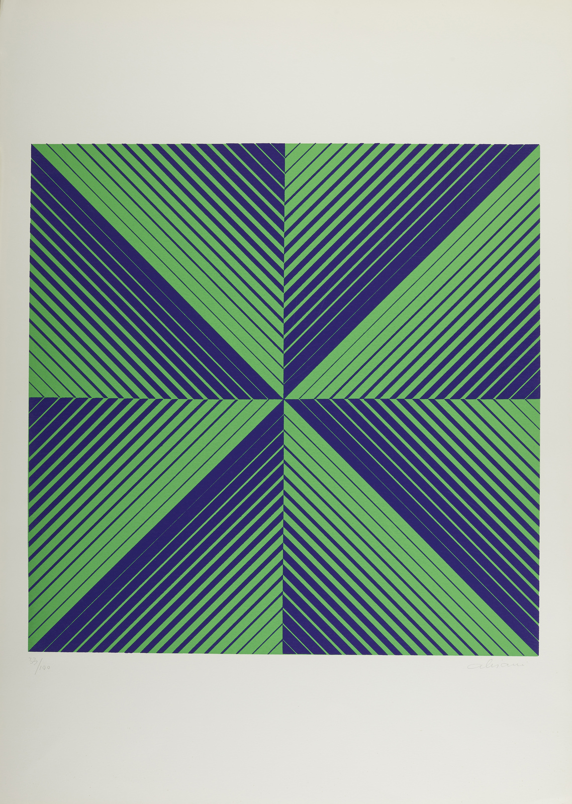 ALVIANI GETULIO (n. 1939) Senza titolo. Serigrafia. Cm 50,00 x 70,00. 33/100. Tiratura e firma in basso a matita. Al retro timbro 2R Rinaldo Rossi Serigrafo.