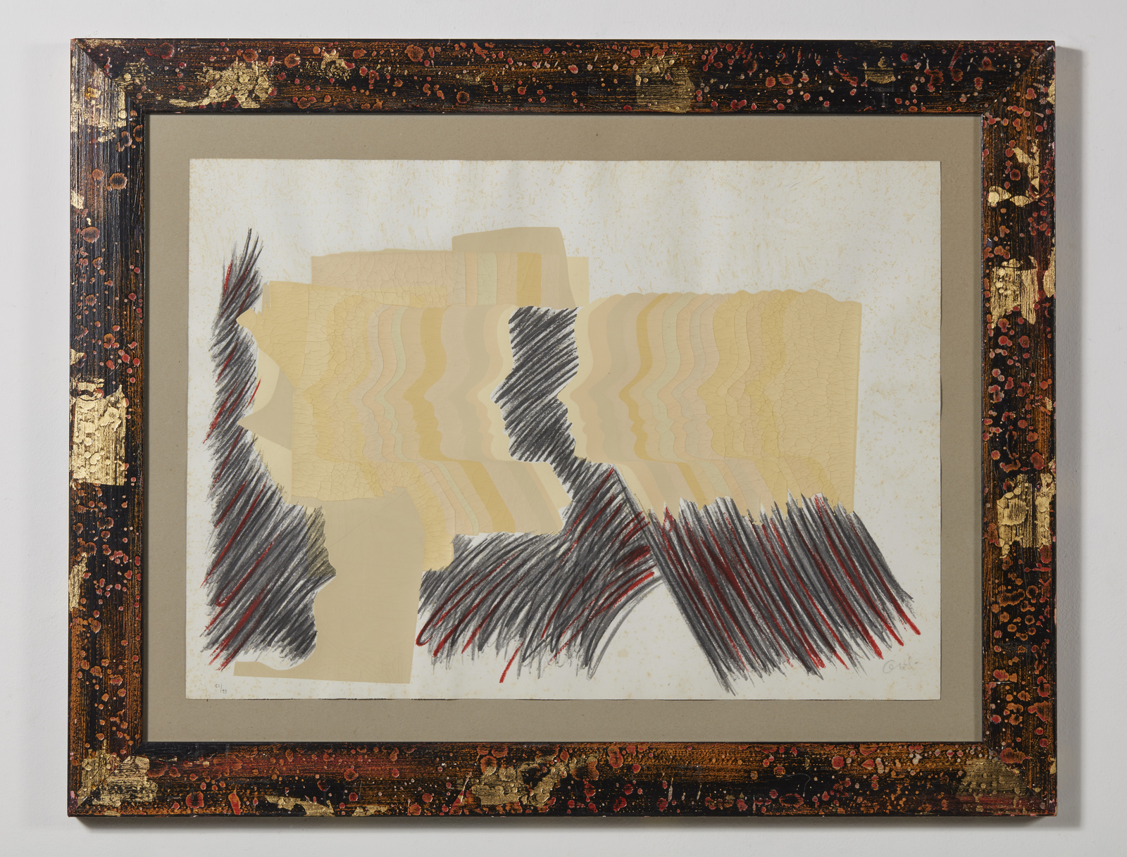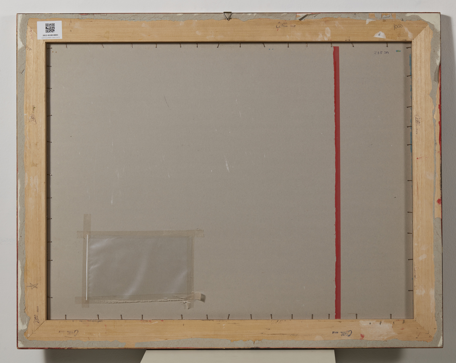 CEROLI MARIO (n. 1938) Senza titolo. 1985. Serigrafia ritoccata a mano. Cm 69,50 x 49,50. 51/99. Tiratura e firma in basso a matita. Timbro a secco Vigna Antoniniana in basso a sinistra. Certificato di autenticità La Spirale, Milano. Difetti. Cornice presente