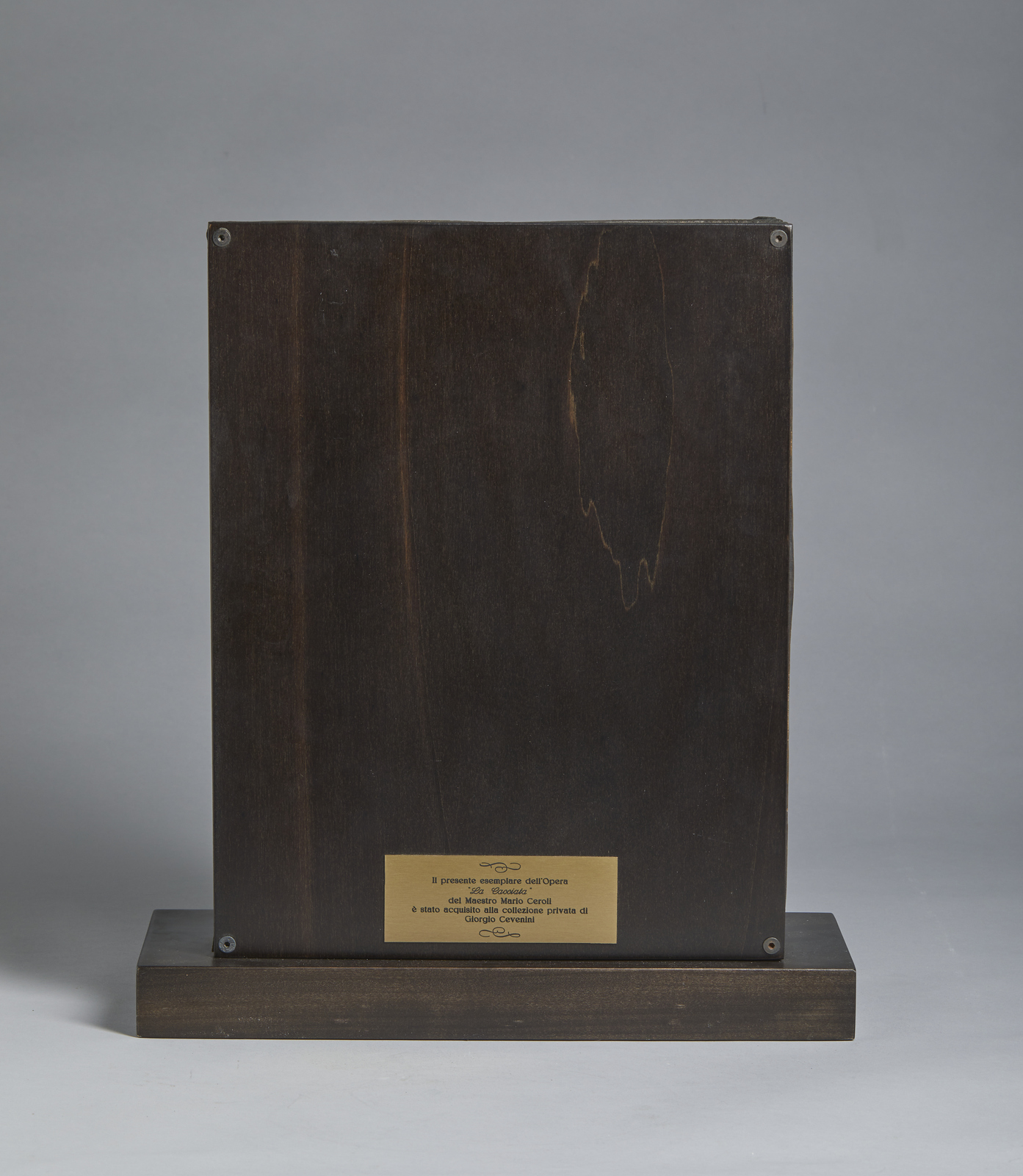 CEROLI MARIO (n. 1938) La cacciata. Scultura in bronzo. Cm 32,00 x 41,00 x 9,00. 221/350. Tiratura e firma incise sul lato sinistro. Edizione totale: 350+XXV esemplari. Eseguita presso Fonderia Venturi Arte, Cadriano. Provenienza: Collezione Cevenini; Private Collection. Certificato di autenticità e provenienza Art'E', Bologna. Lievi difetti. Cornice presente