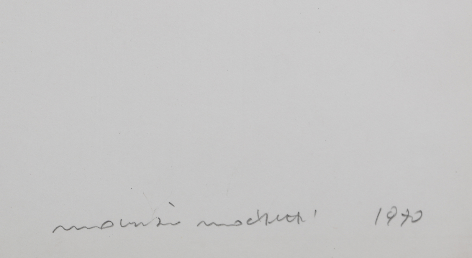 MOCHETTI MAURIZIO (n. 1940) Colpo di Balestra. 1970. Litografia. Cm 63,00 x 49,00. Titolo, firma e anno in basso a matita. Timbro a secco Artestudio Macerata in basso a sinistra. Edizione totale: 100 esemplari. Cornice presente
