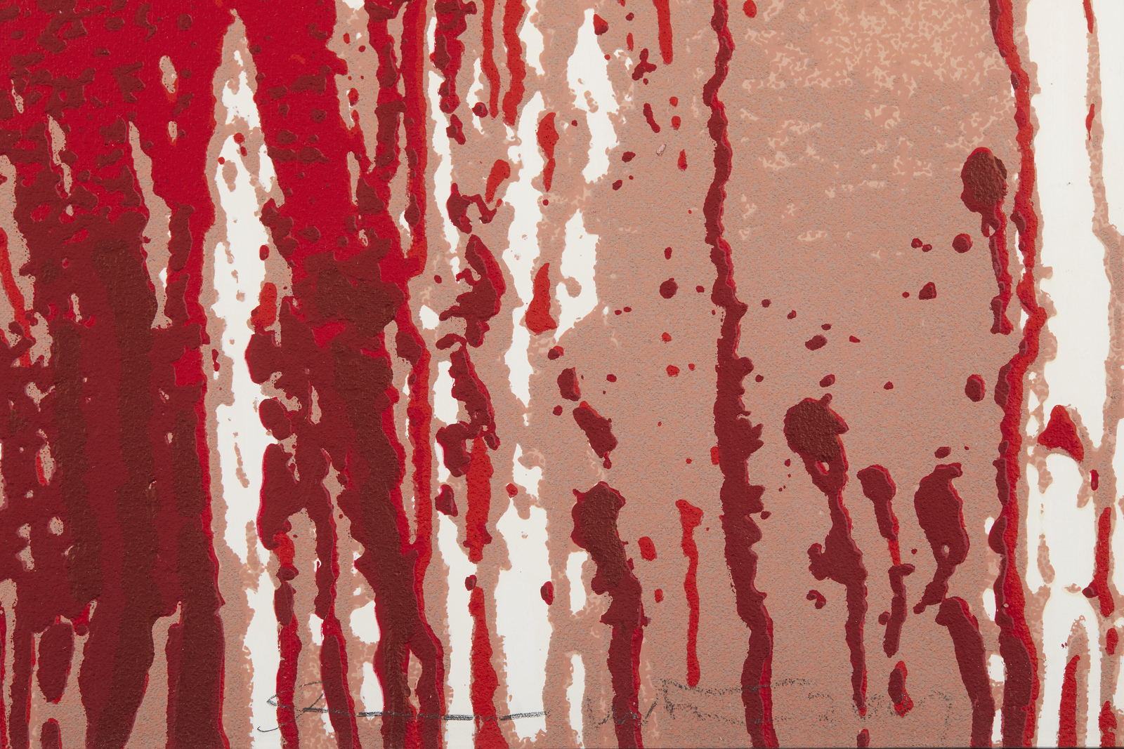 NITSCH HERMANN (1938 - 2022) Senza titolo. 2001. Serigrafia materica. Cm 60,00 x 82,00. 64/100. Tiratura, firma e anno in basso a matita. . Cornice presente