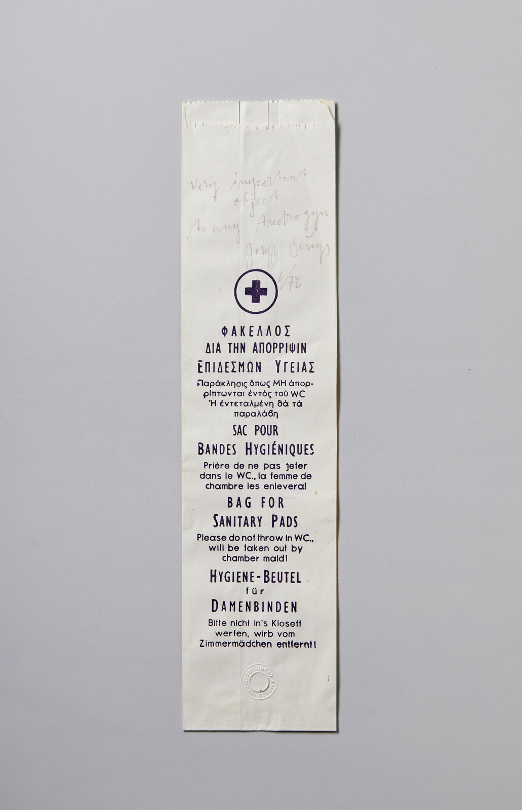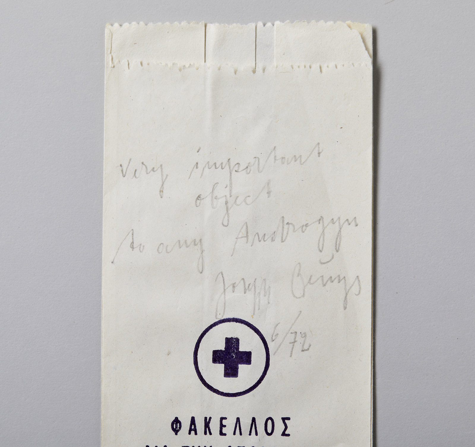 BEUYS JOSEPH (1921 - 1986) Bags for Sanitary. Multiplo. Cm 9,50 x 39,00. 6/72. Tiratura e firma in alto a matita.In basso timbro a secco Lucio Amelio, Napoli. Editore: Lucio Amelio, Napoli. Pubblicazione: Joseph Beuys, Die Multiples, Schellmann Edition, Munchen-New York, Schrimer/Moser Verlag, Munchen, 1997, n. 362. Provenienza: Collezione Lucio Amelio, Napoli; Collezione privata, Napoli. Lievi difetti.