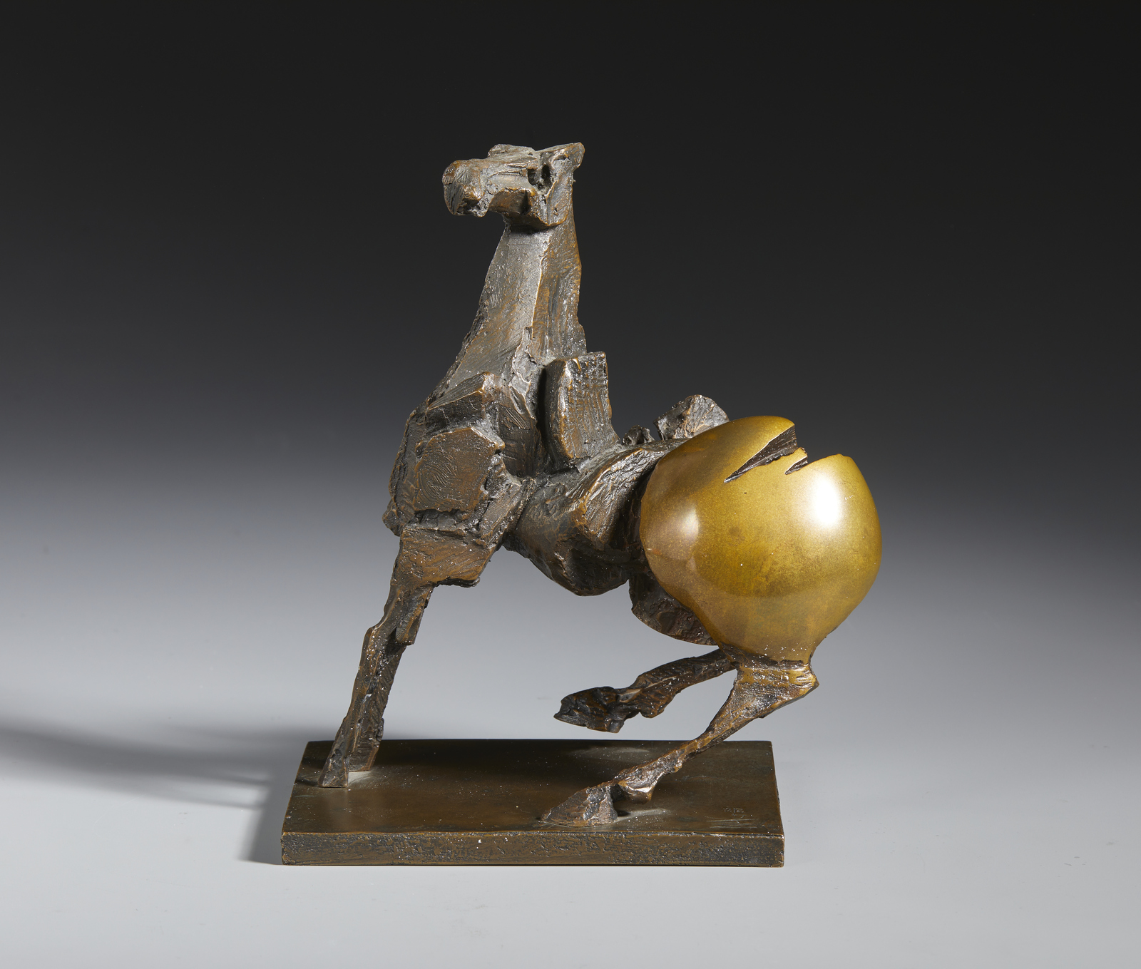 ARNOLDI NAG (n. 1928) Cavallo. Scultura in bronzo. Cm 20,00 x 23,00 x 13,00. 35/50. Tiratura e firma a incisione sulla base. Certificato di provenienza Galleria d'Arte Giorgio Ghelfi, Montecatini Terme.