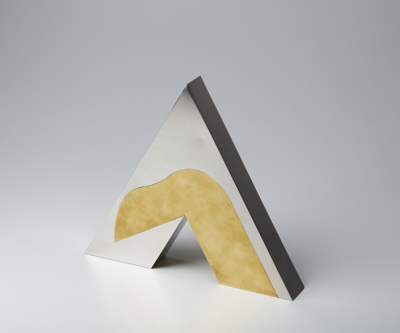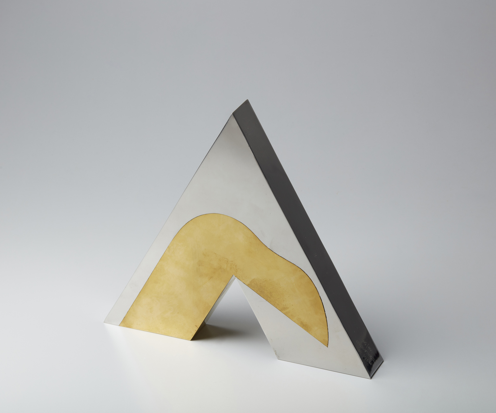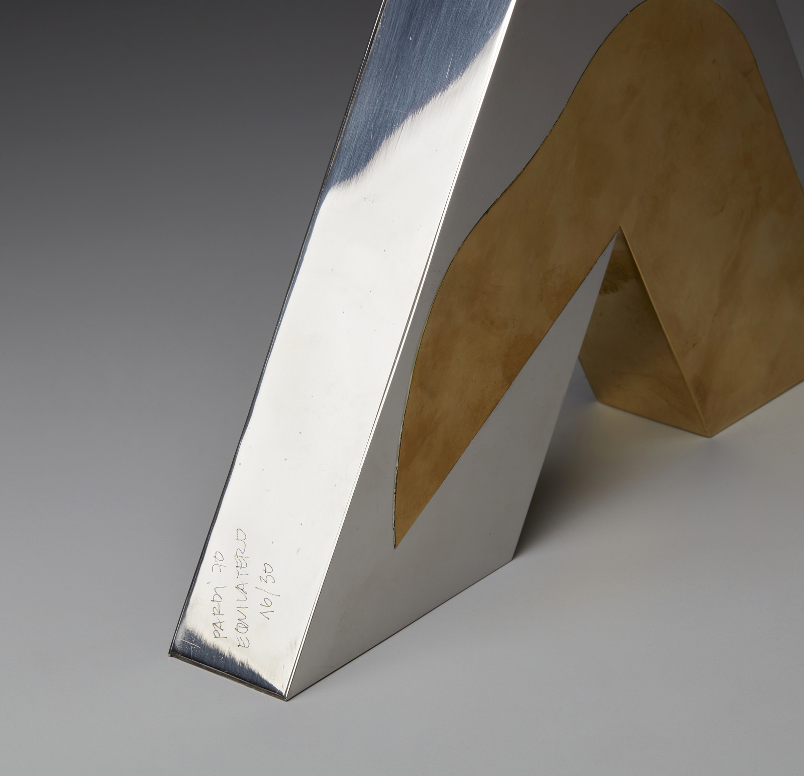 PARDI GIANFRANCO (n. 1933) Equilatero. 1970. Acciaio cromato. Cm 30,00 x 26,00 x 4,50. 16/30. Firma e tiratura sul lato. Provenienza appartamento Giallo Blu di Milano progettato da Nanda Vigo nel 1971. Pubblicato su Interni magazine "Nanda Vigo: opere abitate da opere 1959 - 1972". Difetti.