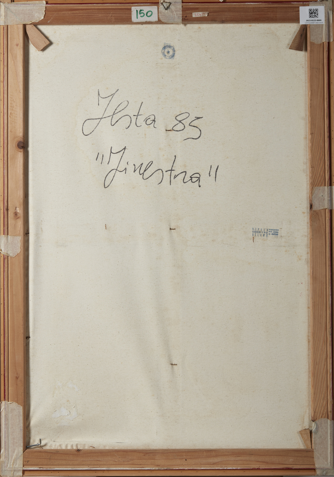 FESTA TANO (1938 - 1988) Finestra. 1985. Multiplo su tela. Cm 70,00 x 100,00. Al retro titolo, firma, anno e timbro Studio Oggetto, Caserta. Edizione totale: 99 esemplari numeri arabi + 25 esemplari fuori commercio con numerazione romana. Difetti. Cornice presente