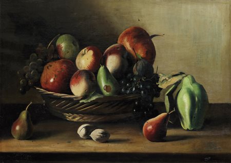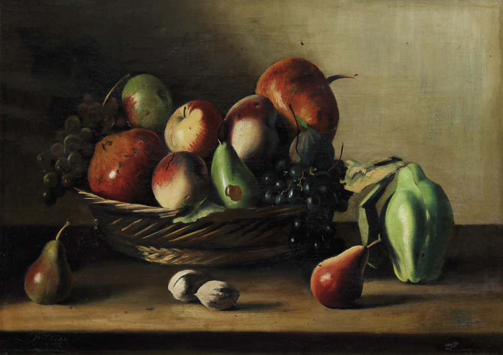 GREGORIO SCILTIAN Rostov Sul Don (Russia) 20/08/1900 - Roma 01/04/1985 Natura morta (1929/33) olio su tela cm. 48x65, firma in basso a sinistra, etichetta della Galleria Annunciata (MI) e timbri della Collezione Romano Lorenzin (MI) al retro, timbro e firma per autenticità e provenienza della Galleria Annunciata (MI) su foto.