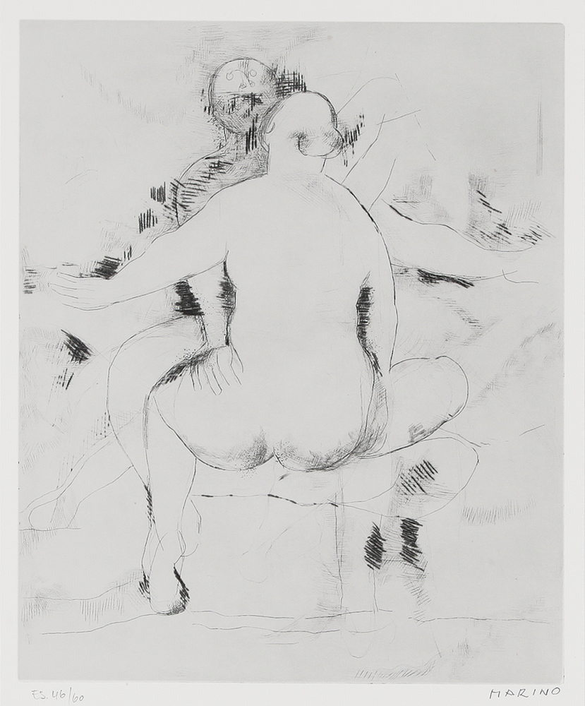 MARINO MARINI Pistoia 27/02/1901 - Viareggio (Lu) 06/08/1980 Impressioni, 1959 acquaforte su carta Magnani cm. 70,5x50 (lastra cm. 44,2x36,8), esemplare 46/60, firma in basso a destra, Editore e Stampatore Luigi De Tullio (MI). Bibliografia: - Marino Marini, Opera Grafica, tavola I; - Marino Marini, Catalogo Ragionato dell'Opera grafica (Incisioni e Litografie), 1919-1980, Giorgio e Guido Guastalla, Edizioni Graphis Arte, pagine 50 e 205, numero A58.