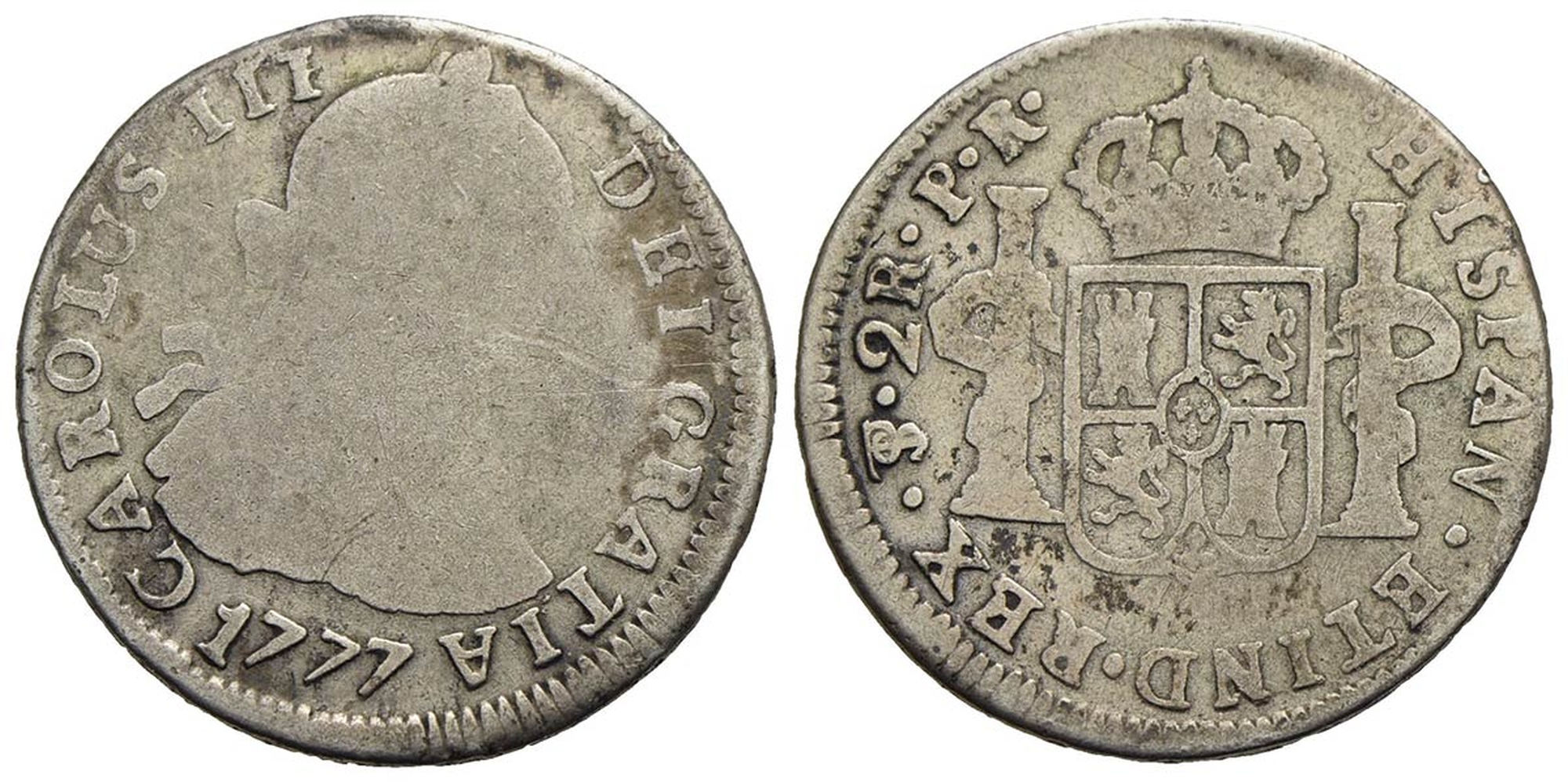 BOLIVIA. Carlo III di Borbone (1759-1788). 2 Reales 1777 PR - Ag. R. Kr. 53. qMB