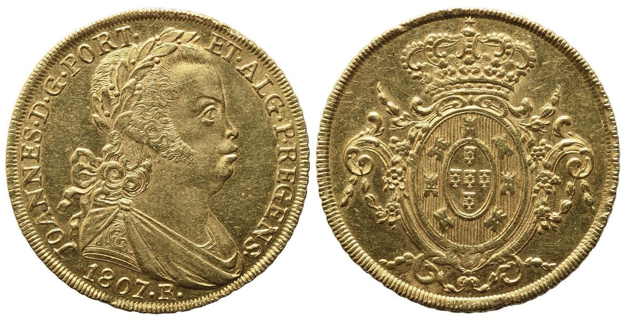 BRASILE. Joao VI del Portogallo (1802-1822). 6400 reis 1807. Au (31,8 mm – 14,35 g). SPL