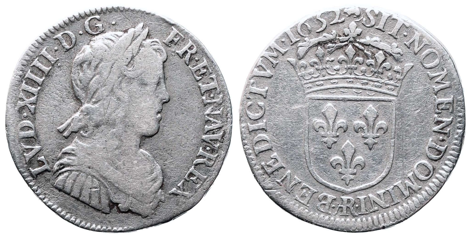 FRANCIA. Luigi XIV (1643-1715). 1/4 di Ecu 1652. Ag (6,63 g). Appiccagnolo abilmente rimosso. Arras. Dy.1471; Gad.140. RR. BB