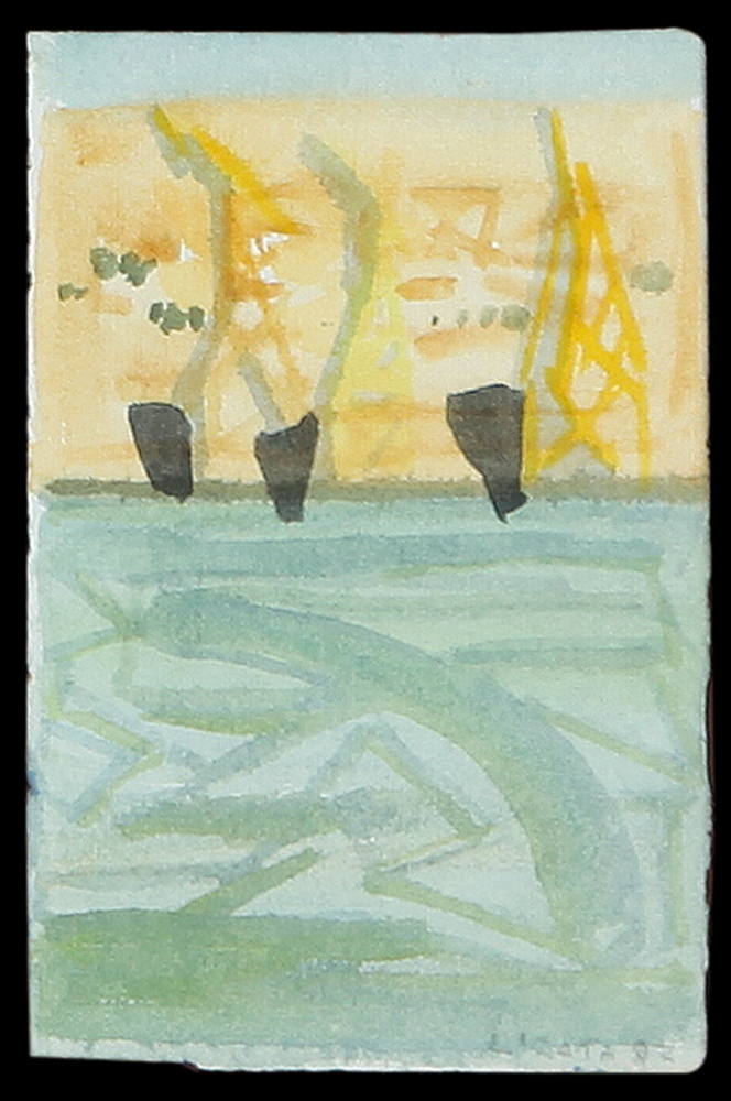 RICCARDO LICATA Torino 20/12/1929 Senza titolo, 1984 acquarello su carta cm. 15,5x10, firma e anno in basso a destra, dichiarazione d'autenticità dell'artista su foto.