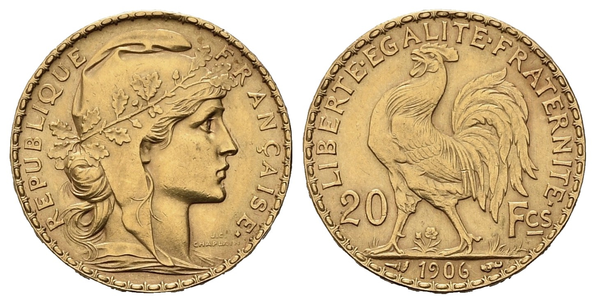 FRANCIA. Terza Repubblica (1870-1940). 20 franchi 1906. Au (21,15 mm – 6,45 g). SPL.