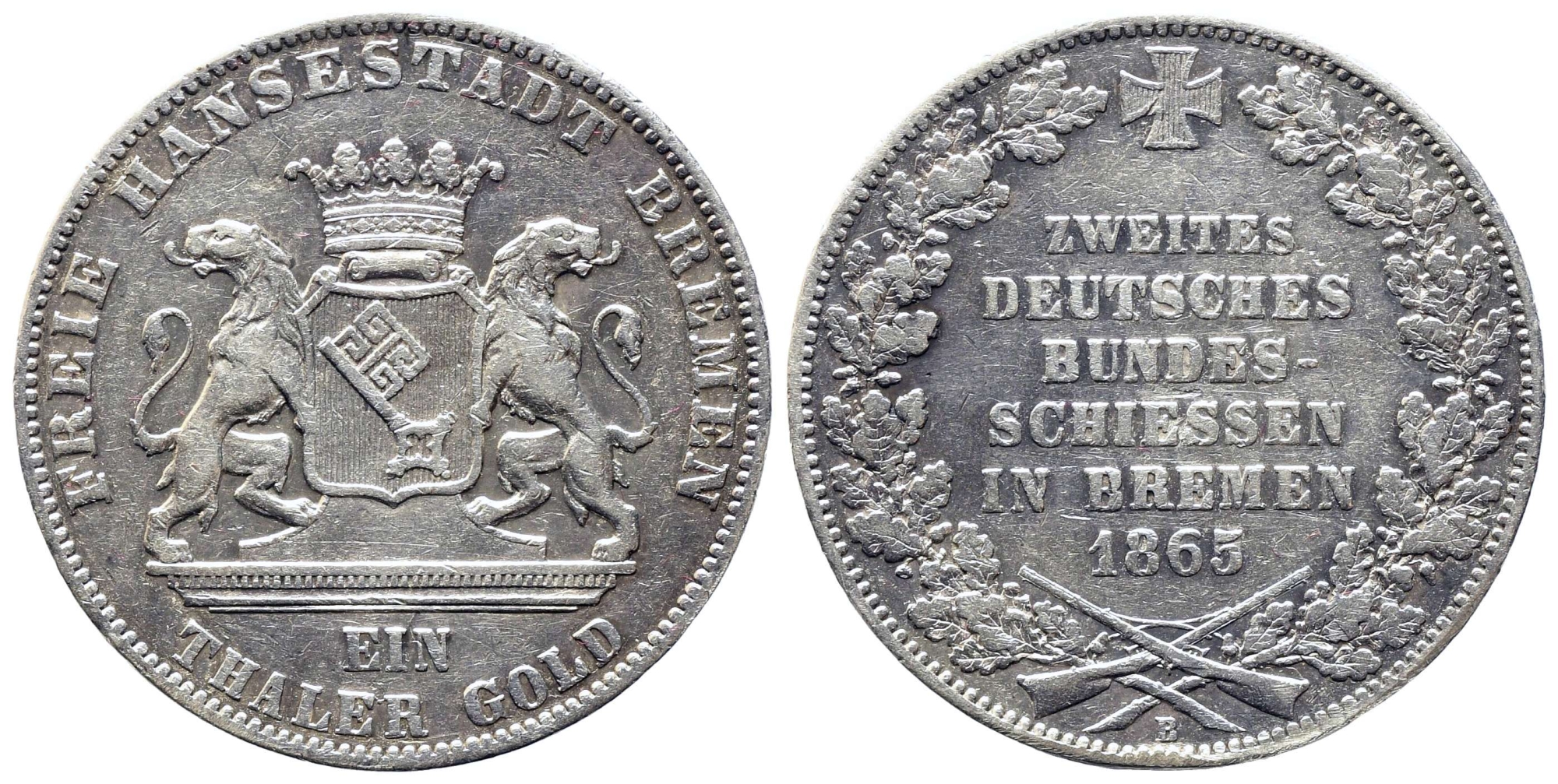 Lot 125 | GERMANIA. Brema. Tallero 1865. II festival di tiro di Brema. Ag. BB/q.SPL