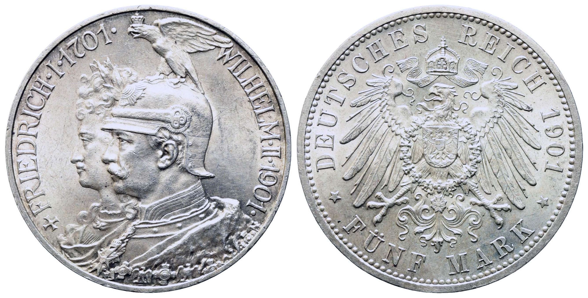 GERMANIA. Prussia. Wilhelm II (1888-1918). 5 Mark 1901 (200° anniversario della Prussia). Ag (27,82 g). KM# 526. FDC