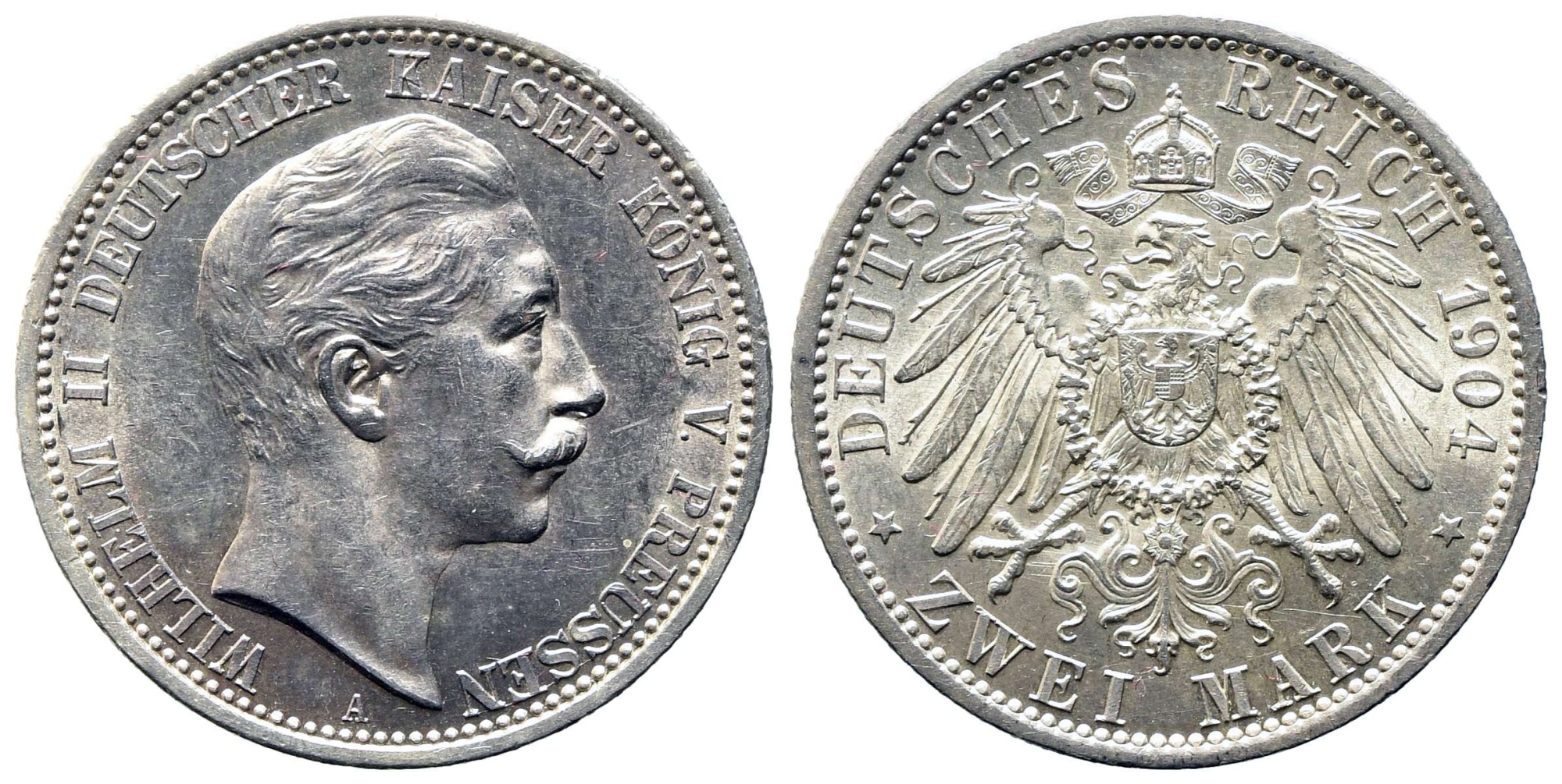 GERMANIA. Prussia. Guglielmo II (1888-1918). 2 marchi 1904. Ag. FDC