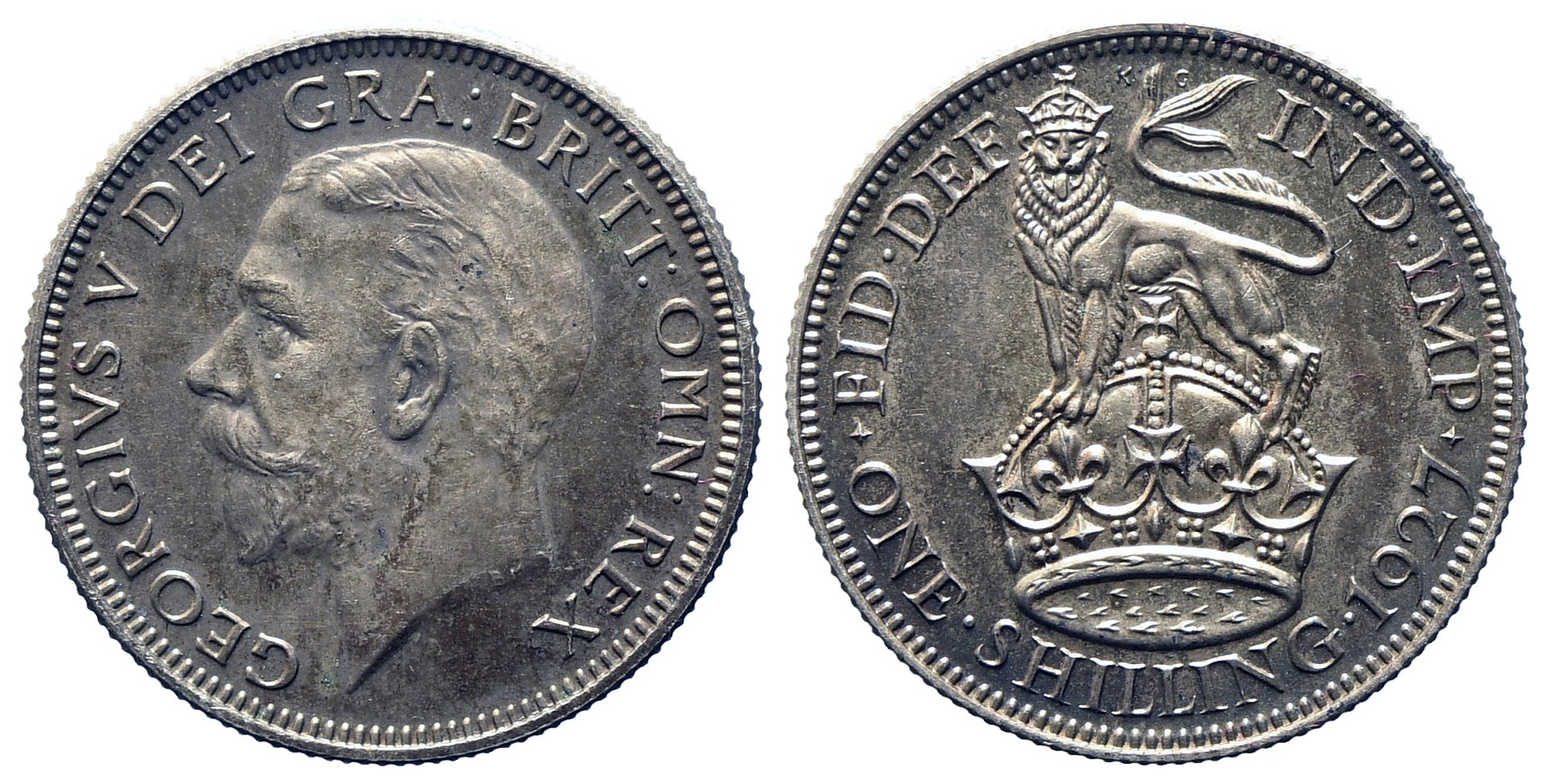 INGHILTERRA. Giorgio V (1910-1936). Shilling 1927. Ag. FDC, bellissima patina.