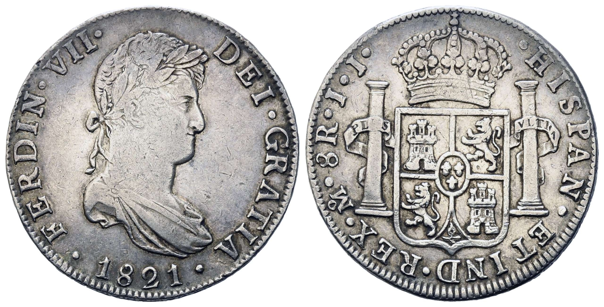 MESSICO. Ferdinando VII di Borbone (1808 - 1833). 8 Reales 1821 JJ. Ag (26,95 g). BB. Buon metallo
