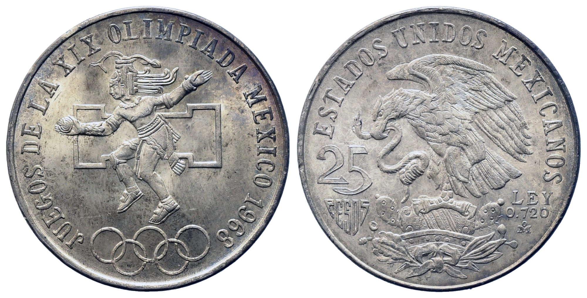 Lot 210 | MESSICO. 25 Pesos 1968 Commemorativa Olimpiadi. Ag 720 (22,5 g). SPL+
