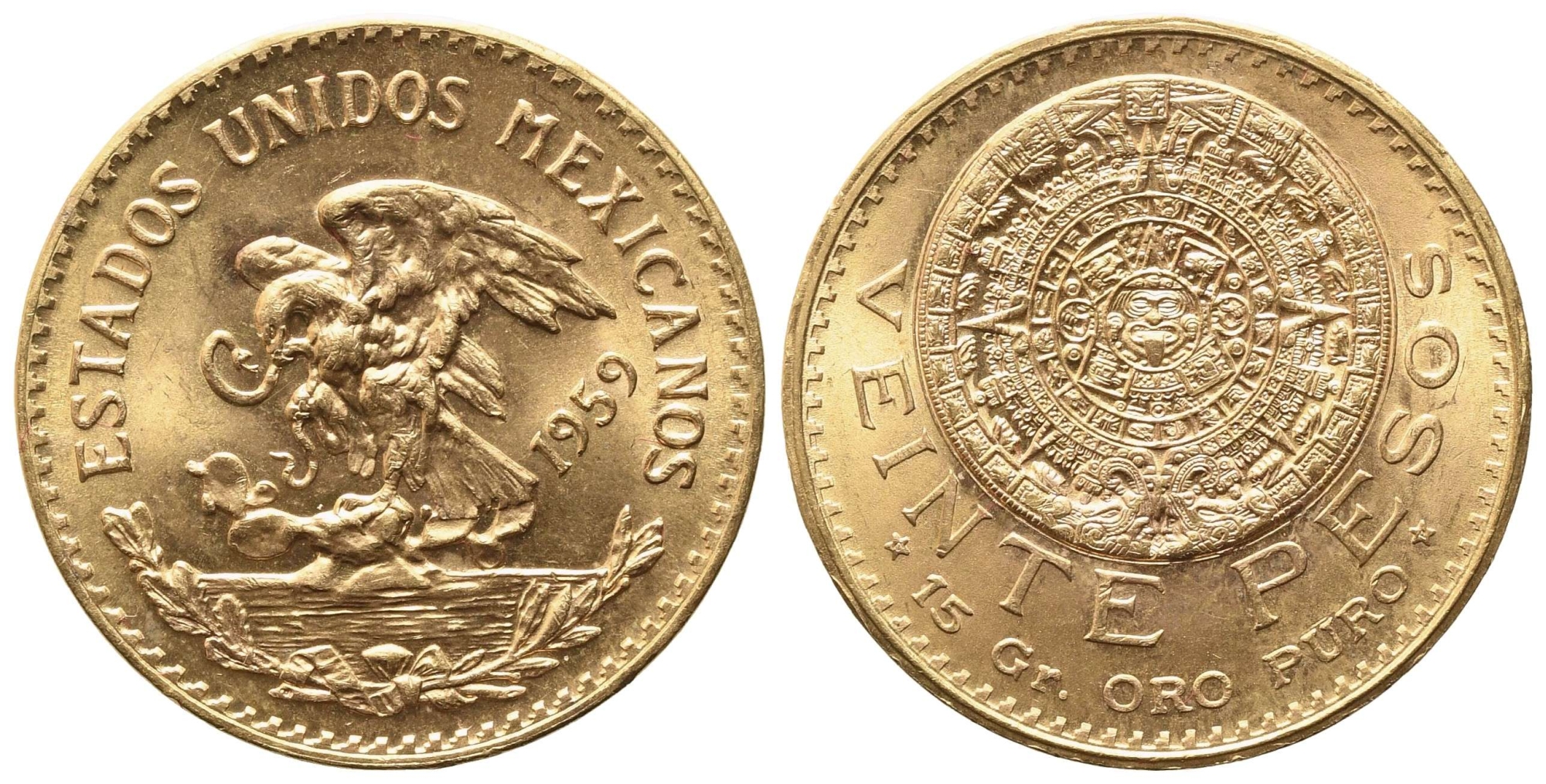 Lot 230 | MESSICO. 20 pesos 1959. Au titolo 900 (16,69 g). FDC