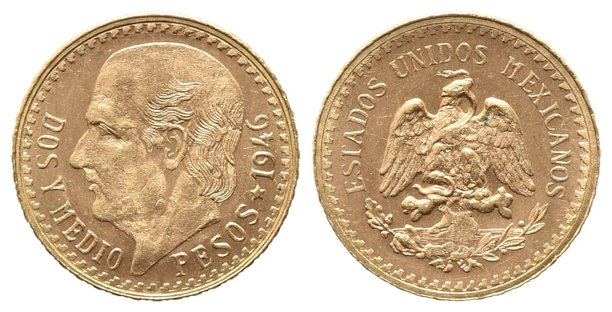 MESSICO. 2,5 pesos 1946. Au titolo 900 (2,083 g). FDC