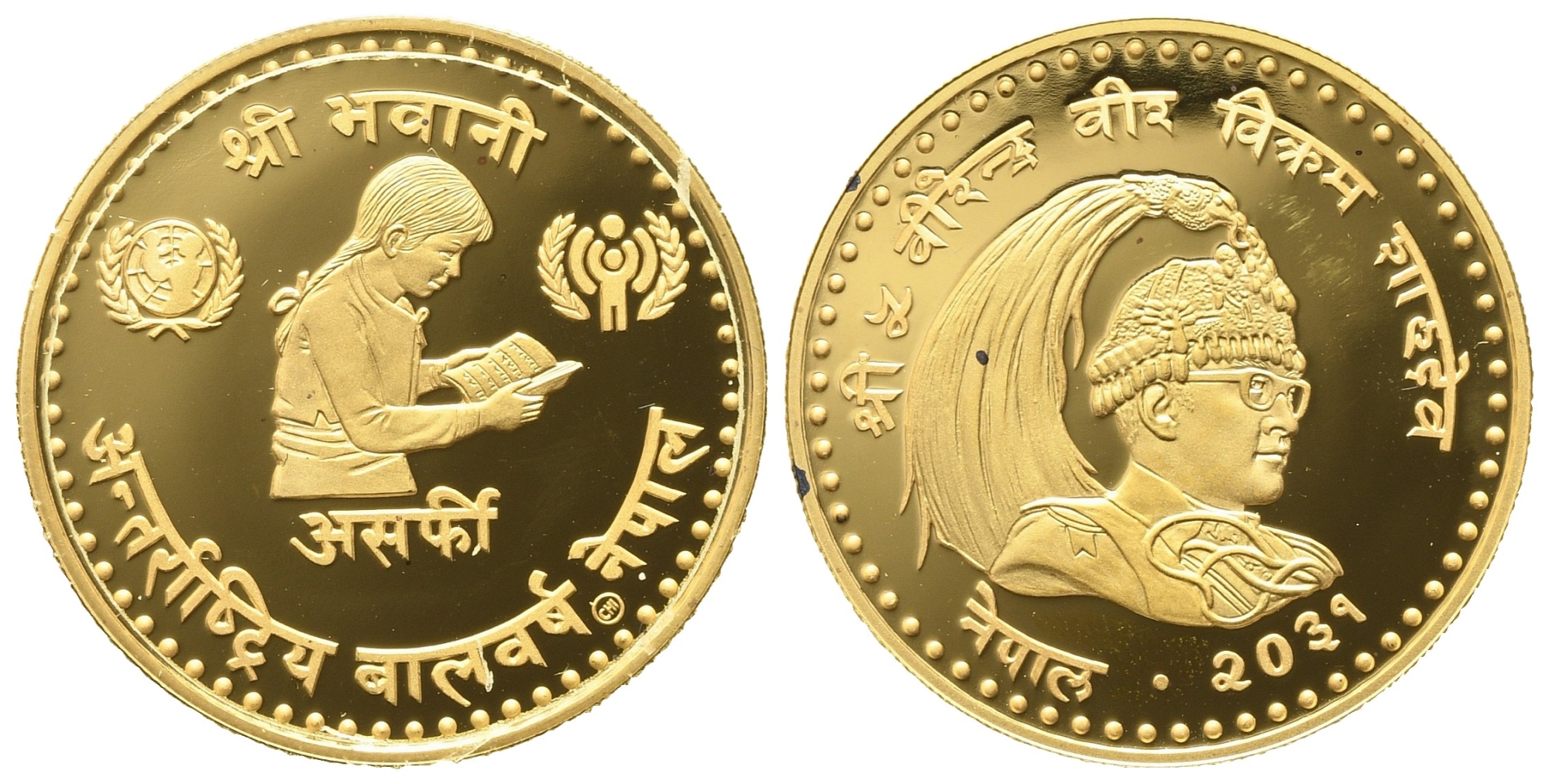 NEPAL. 10 asarphi 1974 (2031). Anno internazionale del bambino. Au titolo 900 (11,66 g). PROOF
