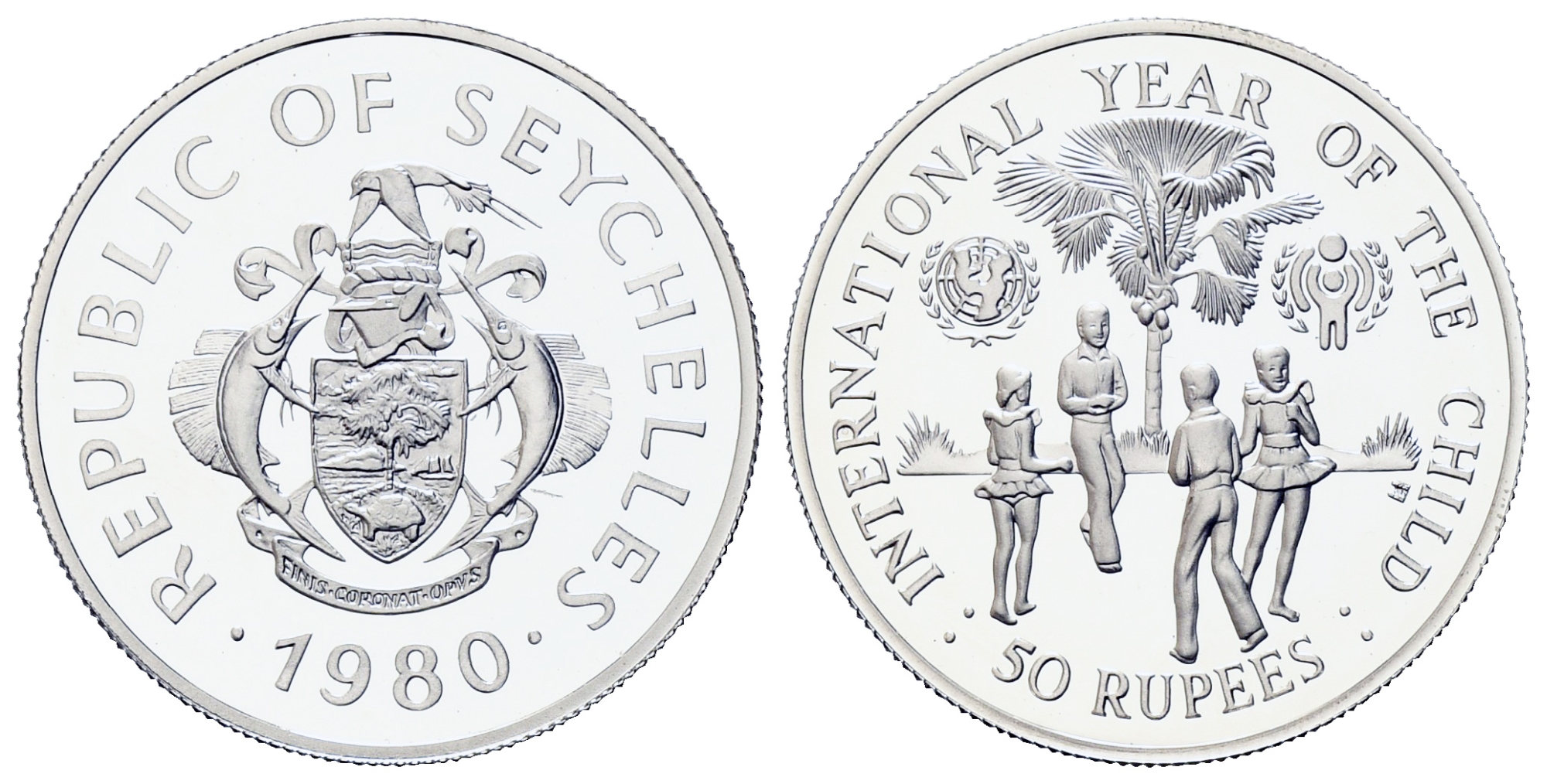Lot 275 | SEYCHELLES. 50 Rupees 1980 Silver Proof. Ag (19,44 g). KM#42. PROOF