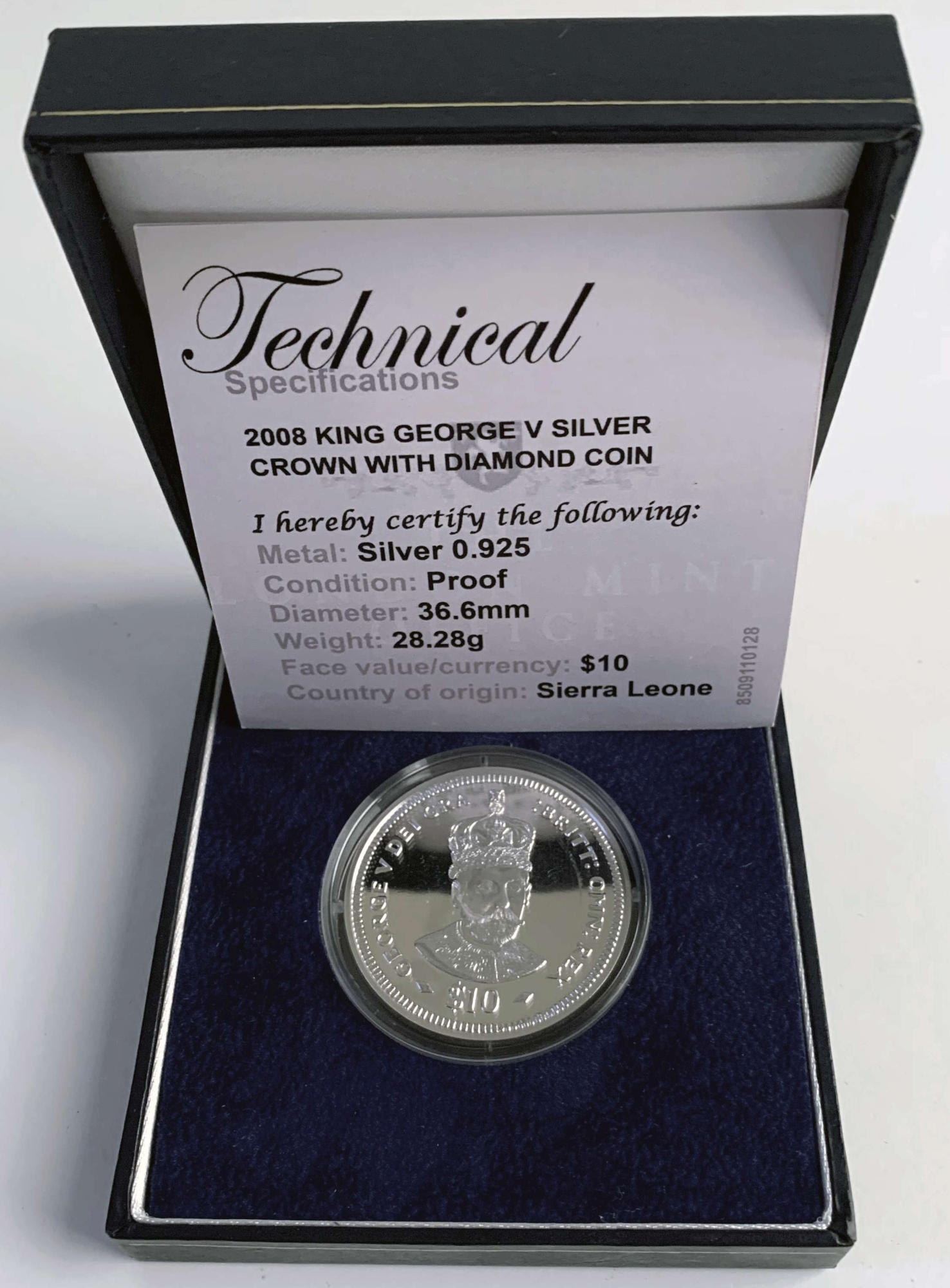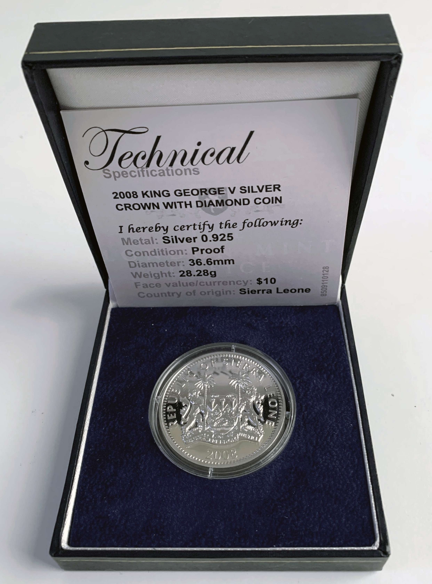 Lot 277 | SIERRA LEONE. 10 Dollari 2008 Re Giorgio V con incastonato diamante. Ag...