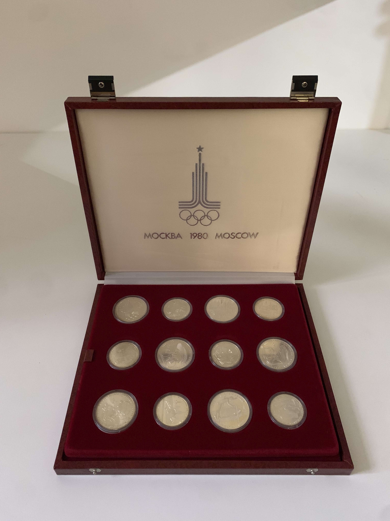 UNIONE SOVIETICA. Olimpiadi di Mosca 1980. Cofanetto di n. 28 monete commemorative in argento: 14 monete da 10 rubli; 14 monete da 5 rubli. Ag titolo 900 (700 g tot. / 20,2412 tr Oz tot.). FDC