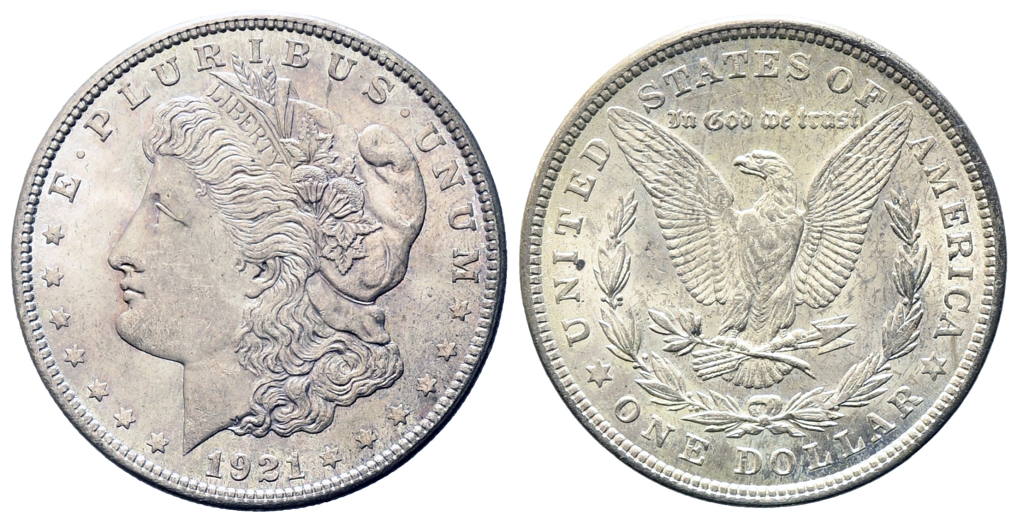USA. Morgan Dollar 1921. Philadelphia. Ag. qSPL