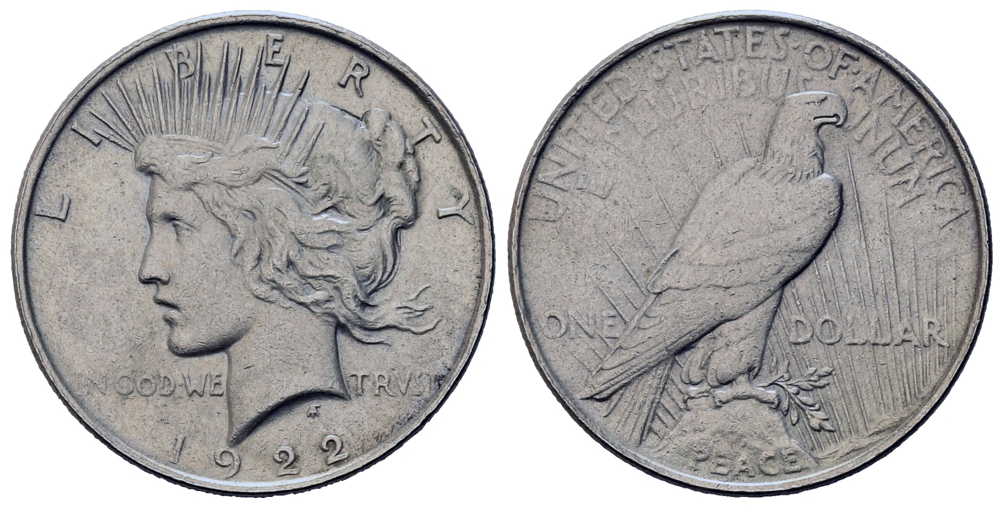 USA. Dollaro Peace 1922. Ag (26,5 g). BB