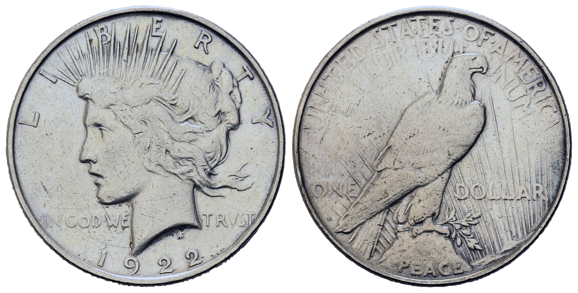 USA. Dollaro Peace 1922. Ag (26,6 g). BB, colpetto