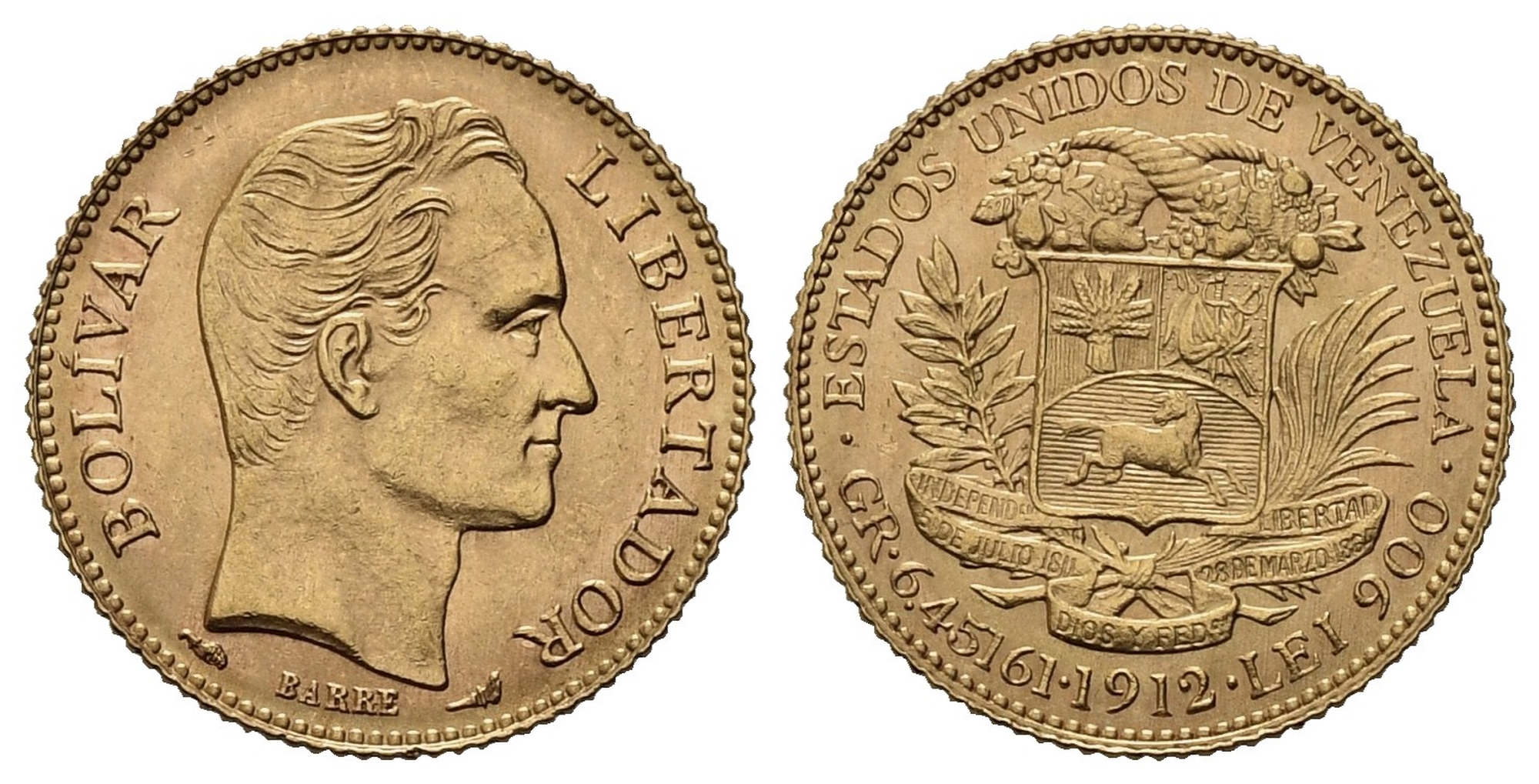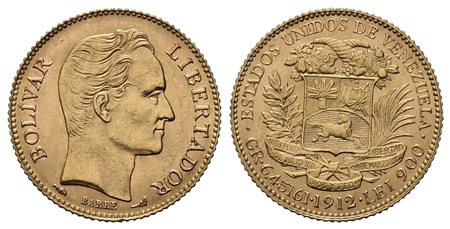 VENEZUELA. 20 bolivares 1912. Au (21,15 mm – 6,45 g). SPL/qFDC