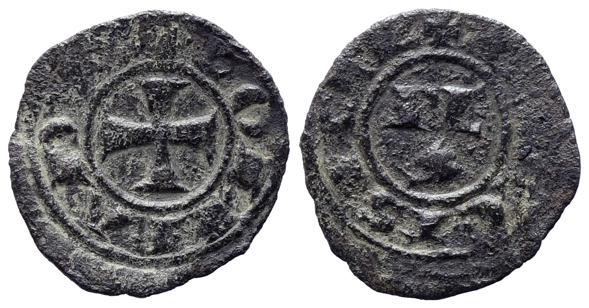 BRINDISI. Corrado I (1250-1254). Denaro. Mi (0,68 g). Tipologia di denaro attribuito dalla Travaini nel 1993 a Messina e dal Guglielmi nel 2000 a Brindisi. MIR 308. CNI 215.27-29. RRR. BB