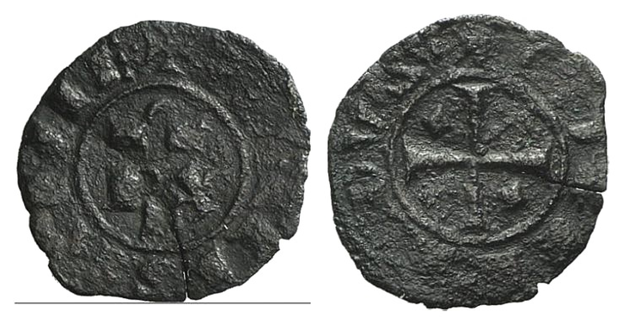 BRINDISI. Corrado I (1250-1254). Mezzo denaro. Mi (12mm, 0.25g). RX. R/ Cross; two pellets. MIR 307. R. MB+