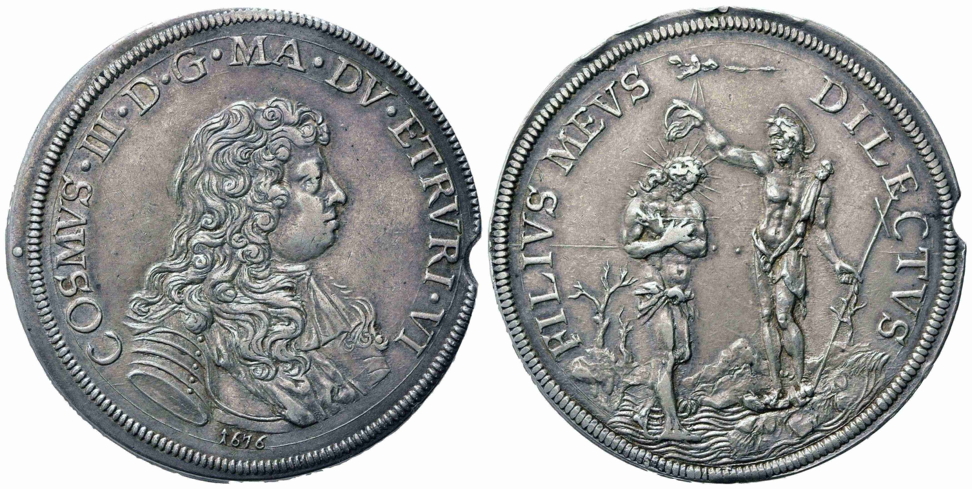 FIRENZE. Granducato di Toscana. Cosimo III de' Medici (1670-1723). Piastra 1676. Ag (45,5 mm – 31,18 g). MIR 326/3. Lieve traccia di appiccagnolo, leggera mancanza sul bordo. BB+