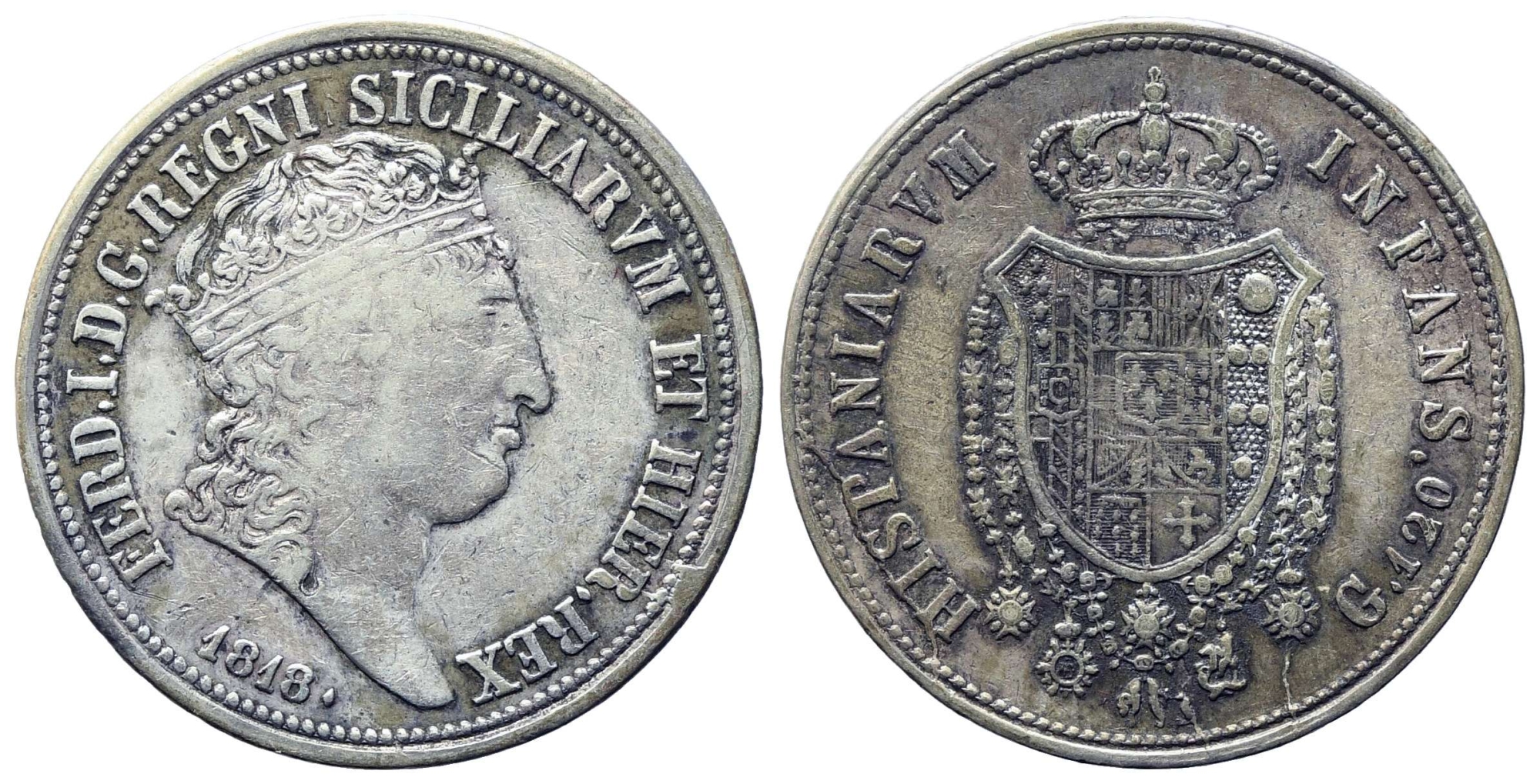 NAPOLI. Regno delle Due Sicilie. Ferdinando I di Borbone (1816-1825). Piastra...